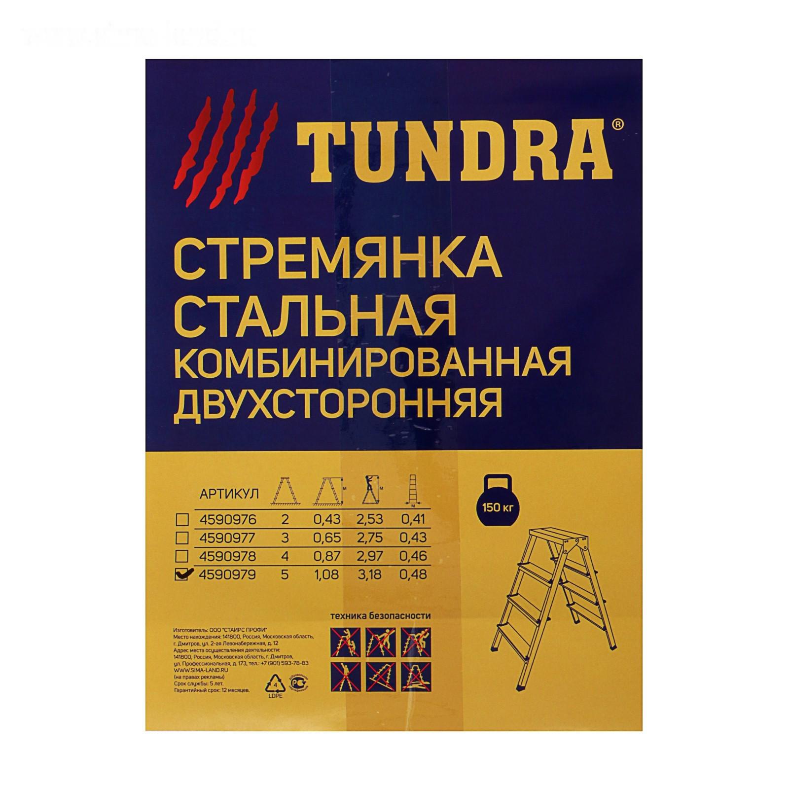 Стремянка ТУНДРА, комбинированная, двухсторонняя, 5 ступени, 1080 мм