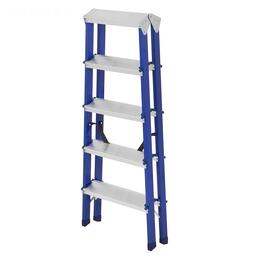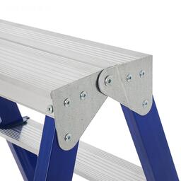 Стремянка выполнена из лёгких, но прочных материалов: каркас — из окрашенной стали, ступени — из алюминия.