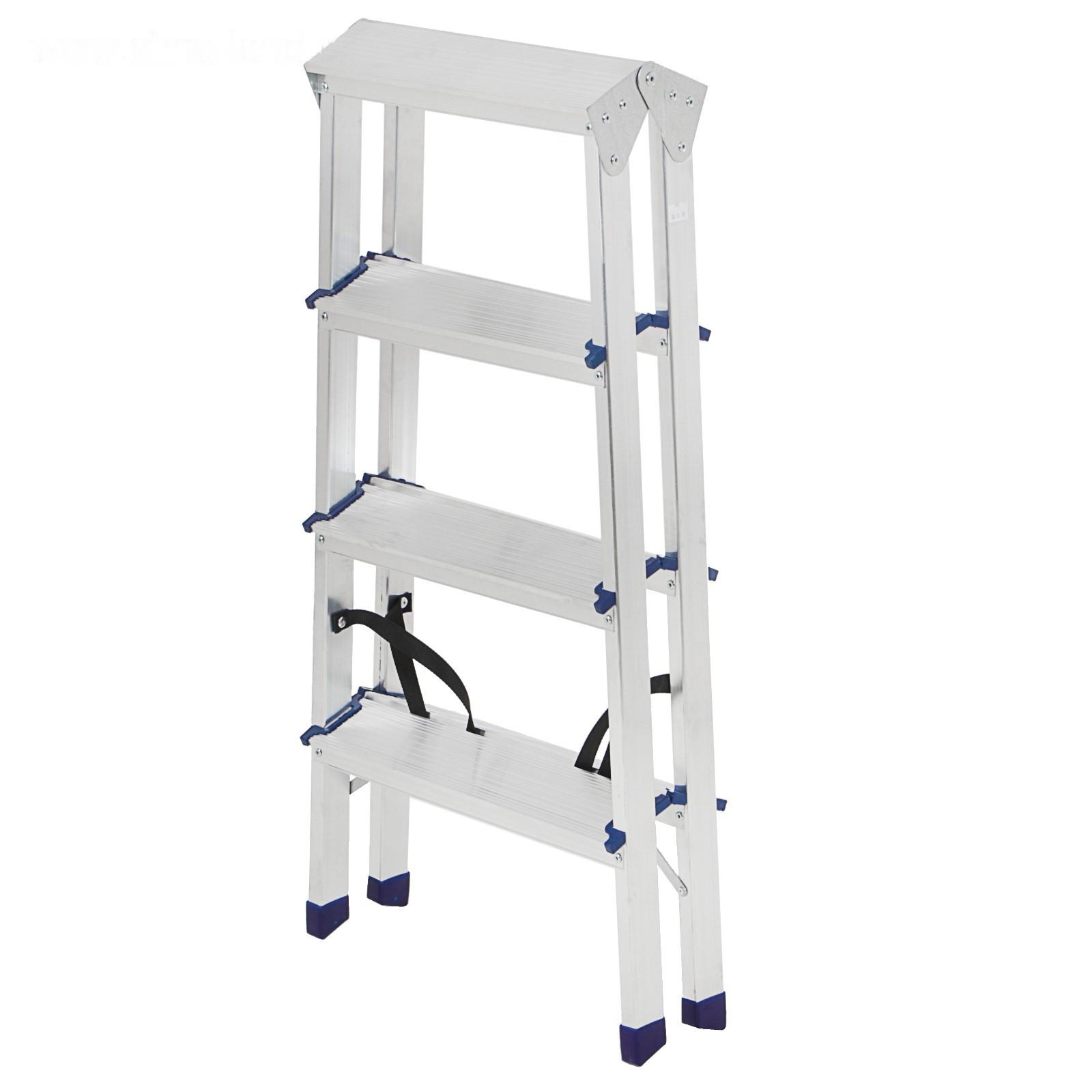 Стремянка ТУНДРА, алюминиевая, двухсторонняя, 4 ступени, 860 мм