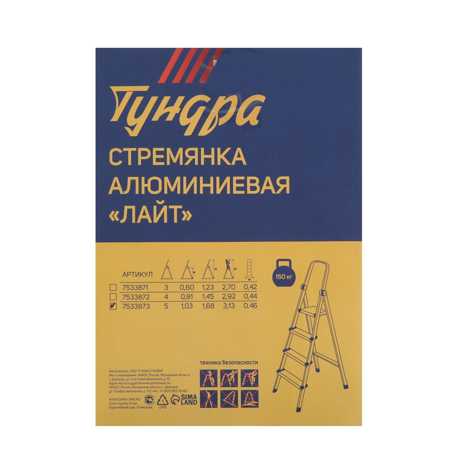 Стремянка ТУНДРА "ЛАЙТ", алюминиевая, 5 ступеней, 1030 мм
