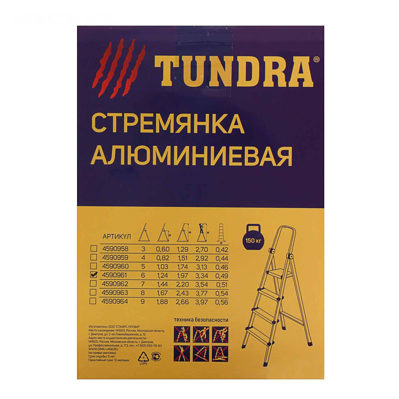 Стремянка ТУНДРА, алюминиевая, 6 ступеней, 1240 мм