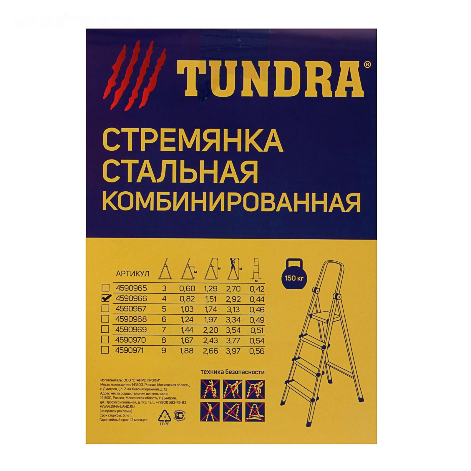 Стремянка ТУНДРА, металлическая комбинированная, 4 ступени, 820 мм