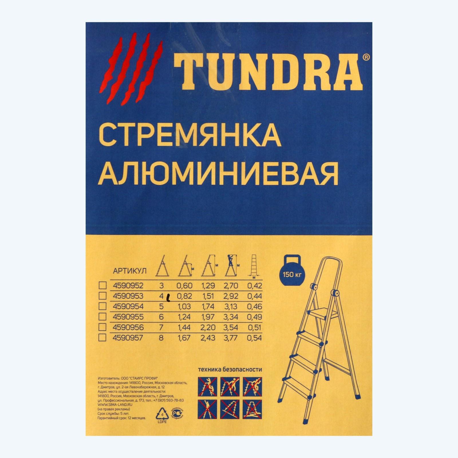 Стремянка ТУНДРА, алюминиевая, с органайзером, 4 ступени, 820 мм