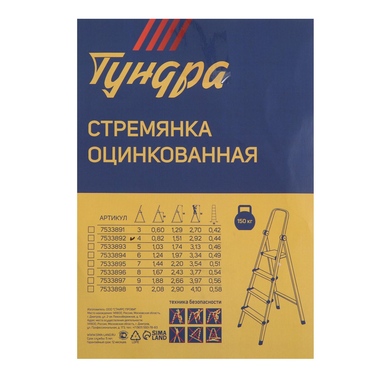 Стремянка ТУНДРА, оцинкованная, 4 ступени
