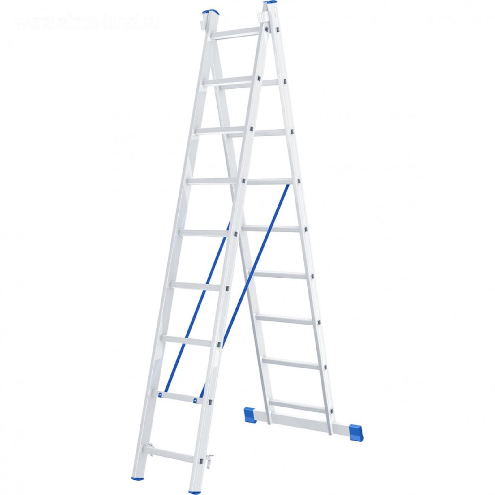 Лестница "Сибртех" 97909, алюминиевая, двухсекционная, 2 х 9 ступеней