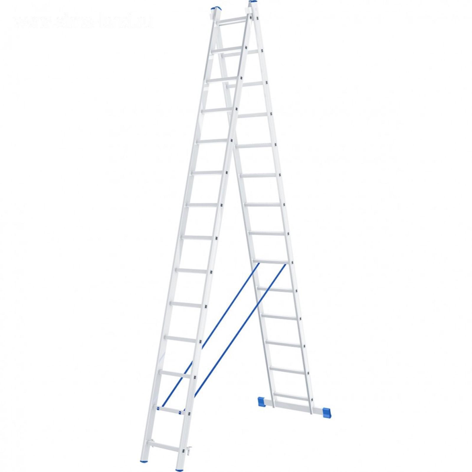 Лестница "Сибртех" 97914, алюминиевая, двухсекционная, 2 х 14 ступеней