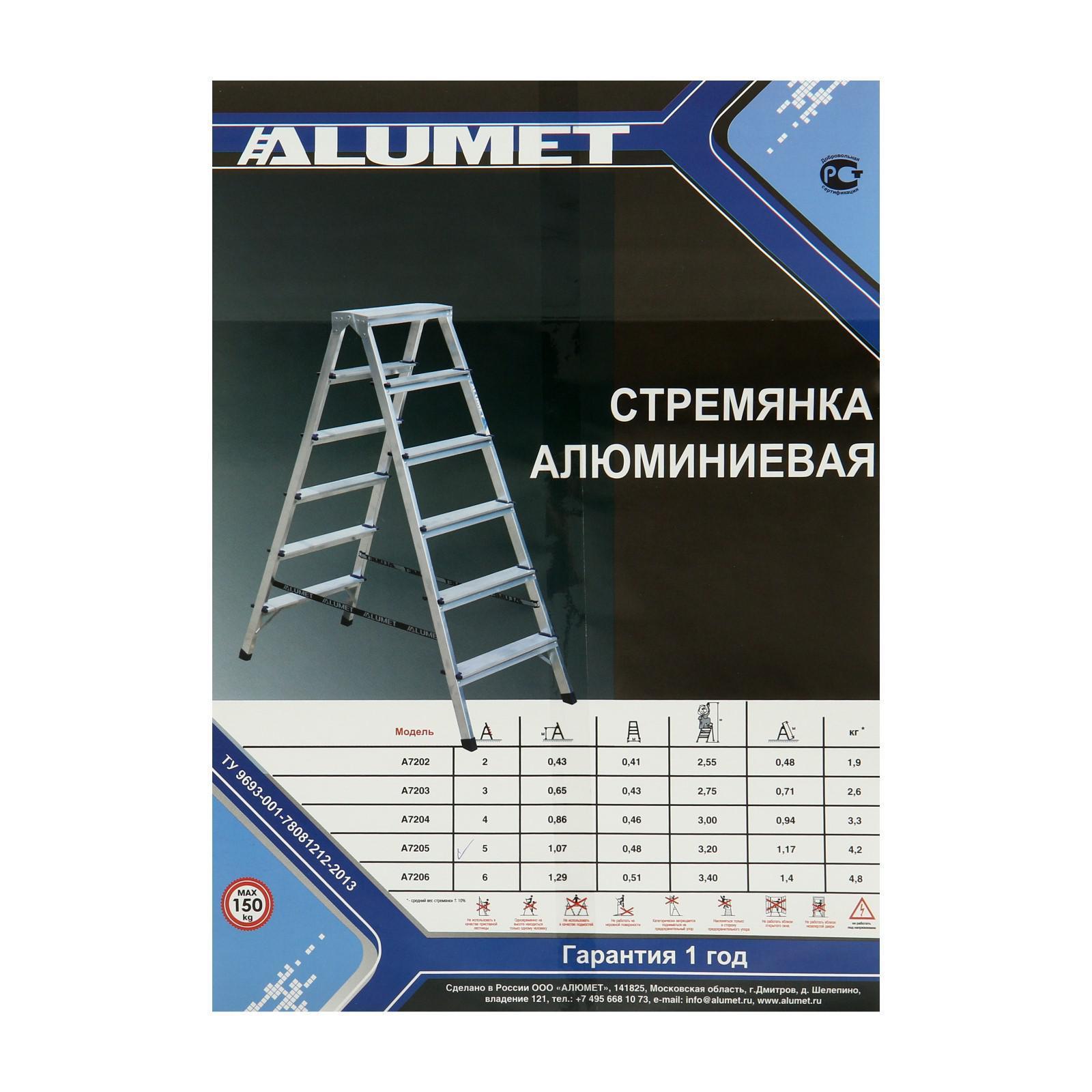 Стремянка "Алюмет", алюминиевая, двухсторонняя, 5 ступеней, 1070 мм