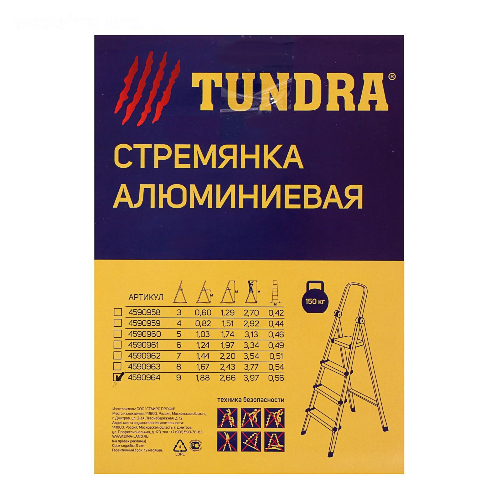 Стремянка ТУНДРА, алюминиевая, 9 ступеней, 1880 мм