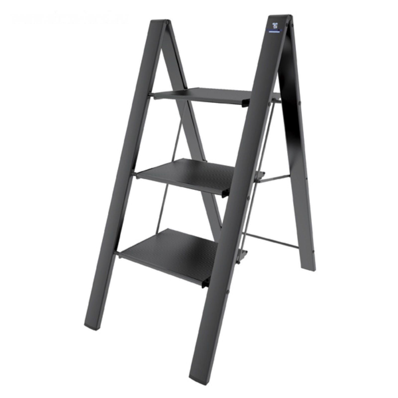 Стремянка пригодится в быту, а также при монтажных и ремонтных работах в доме или на даче. В сложенном виде она легко поместится в кладовке или на балконе.