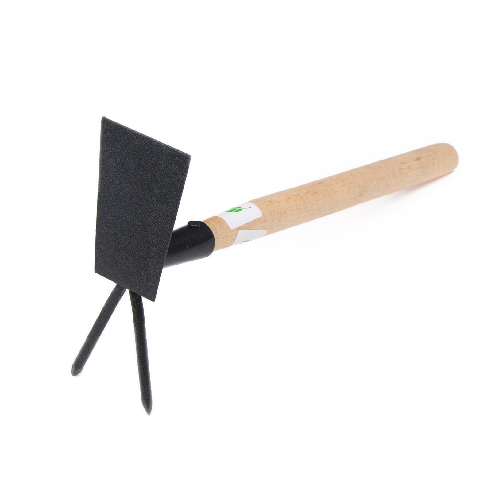 Мотыжка комбинированная, длина 35 см, 2 зубца, деревянная ручка