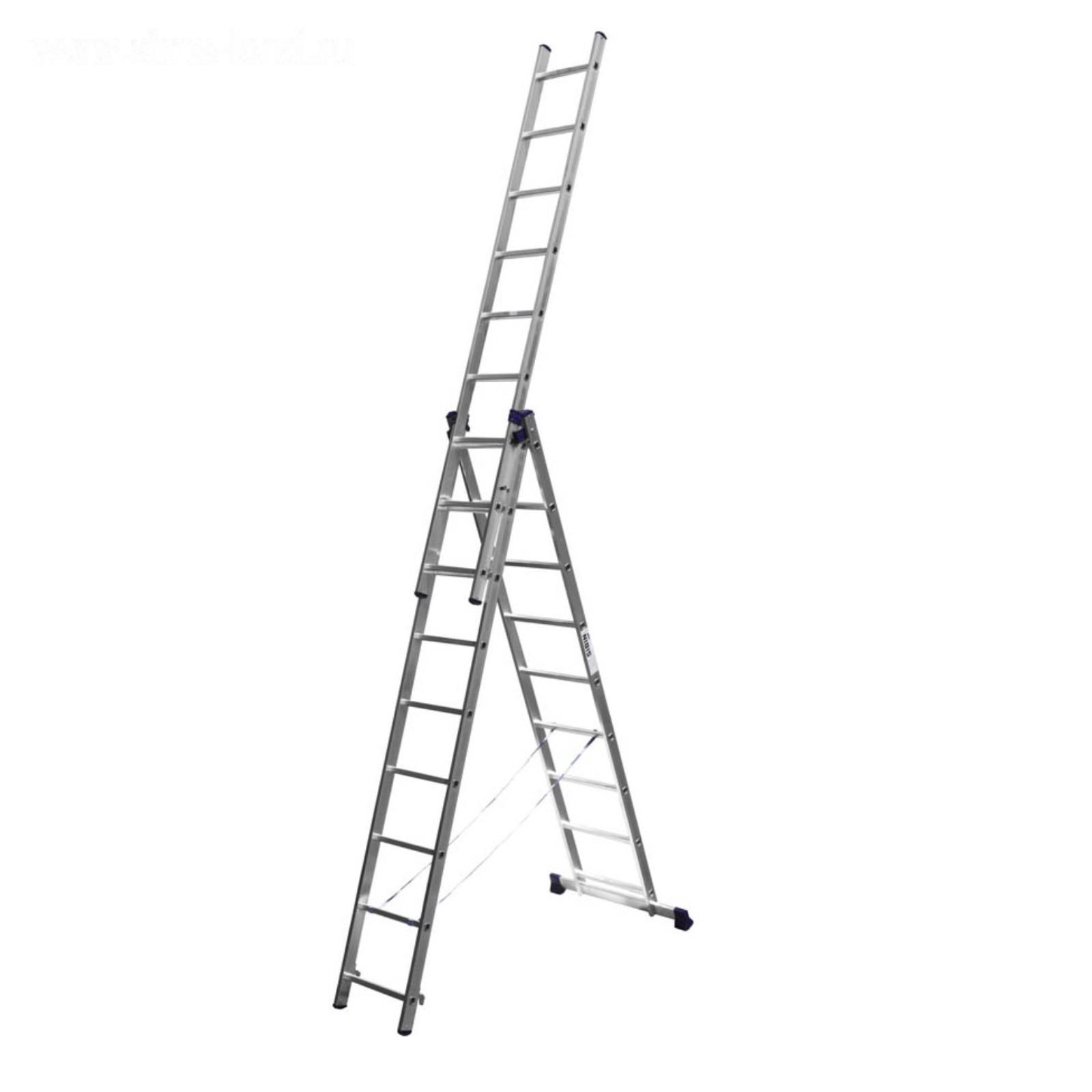 Лестница "СИБИН" 38833-09, трехсекционная, со стабилизатором, 9 ступеней
