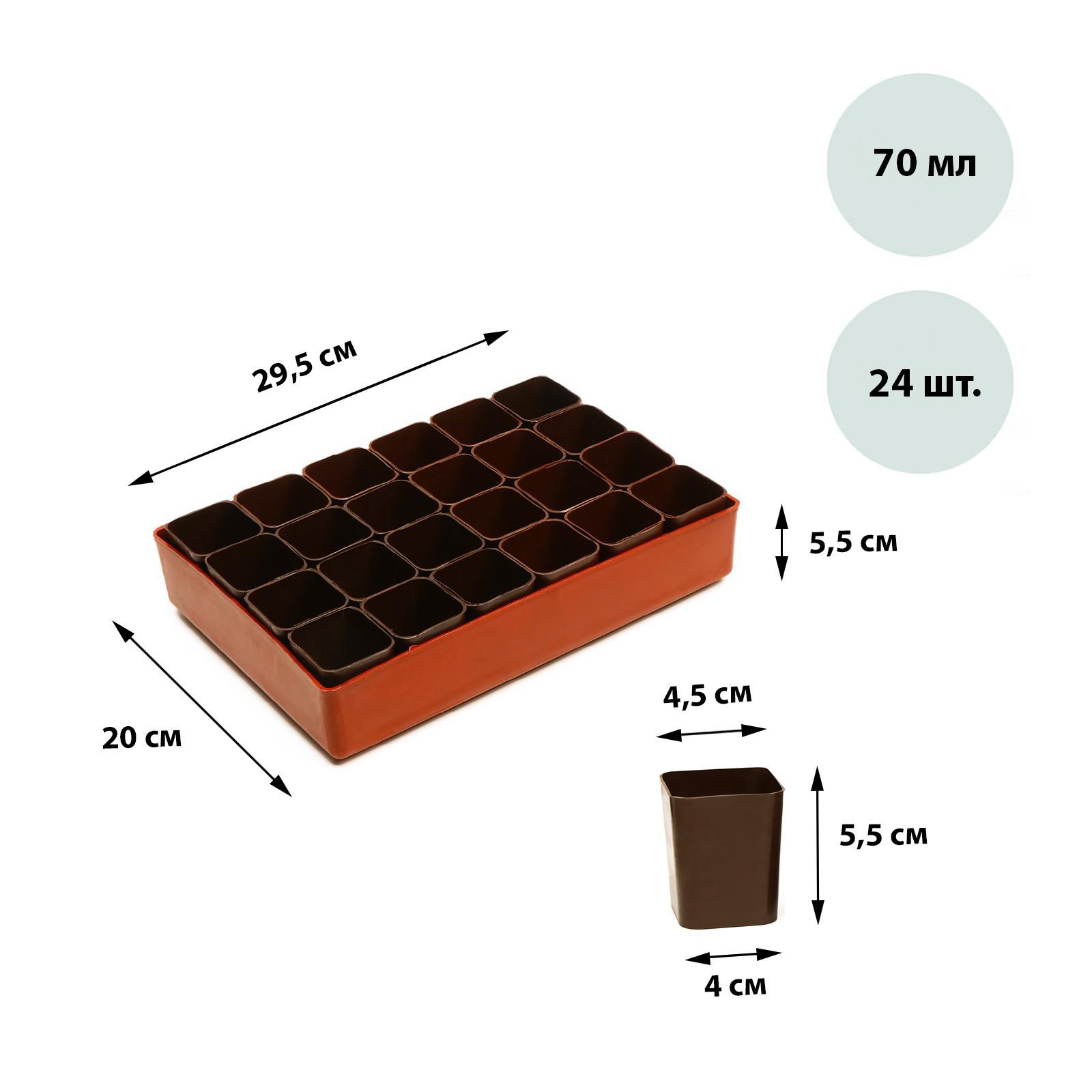 Набор для рассады: стаканы по 70 мл (24 шт.), поддон 30 × 20 см, МИКС