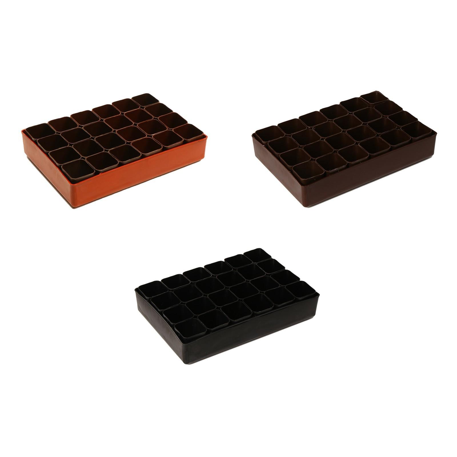 Размер тары подходит для свободного развития корневой системы большинства растений. Пластиковые стаканчики из полипропилена обладают повышенной плотностью и влагостойкостью. Рассадник не токсичен, легко моется, сохраняет форму на солнце, не гниёт, не ломается при падении. Поддон придаёт стаканчикам устойчивость, экономит место, облегчает транспортировку.
