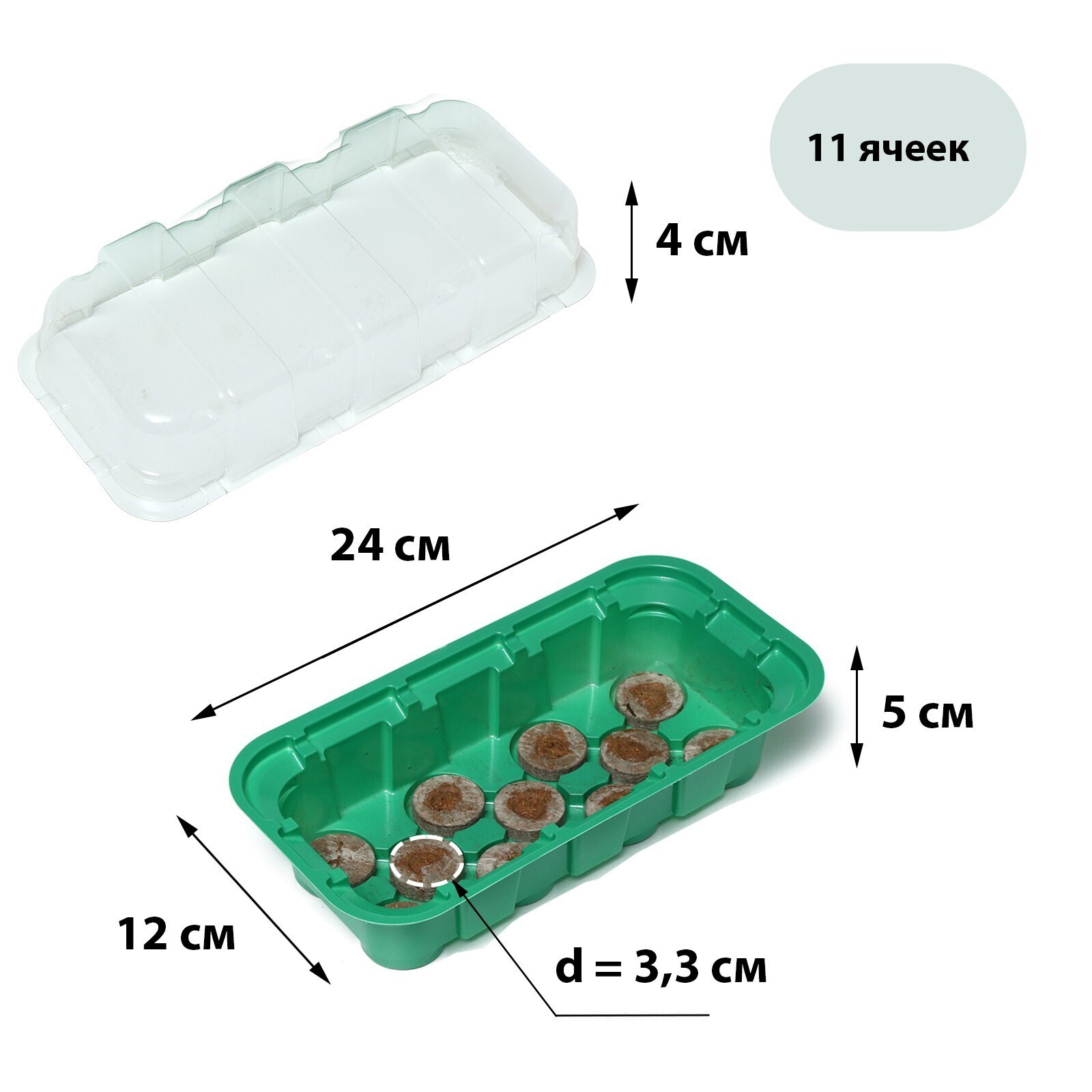 Мини-парник для рассады: торфяная таблетка d = 3,3 см, 11 шт., jiffy
