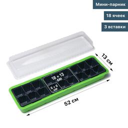 Мини-парник для рассады, 52 × 18 × 13 см, 3 вставки, 18 ячеек, Greengo