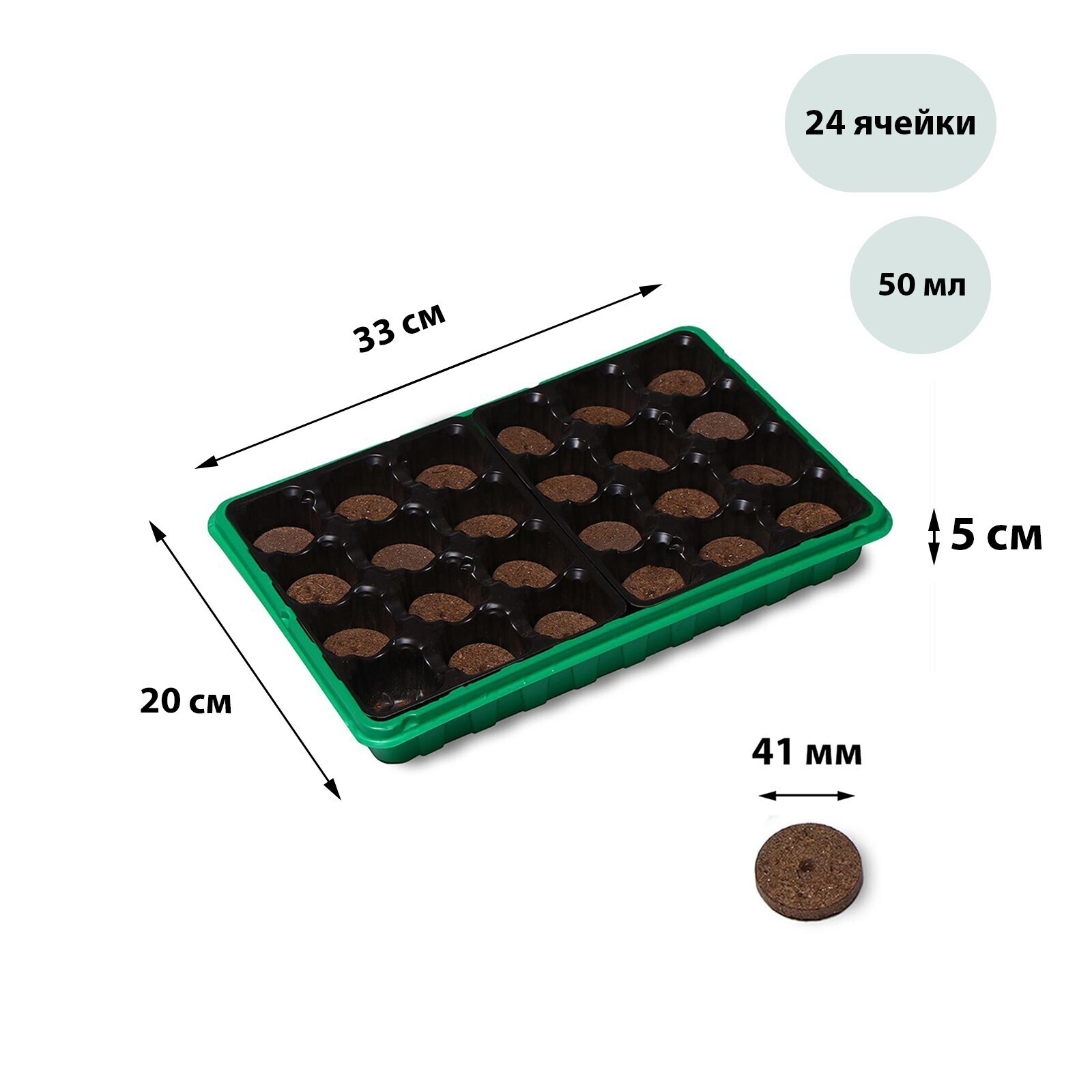 Набор для рассады: торфяная таблетка d = 4.1 см (24 шт.), кассета на 24 ячейки по 50 мл, поддон