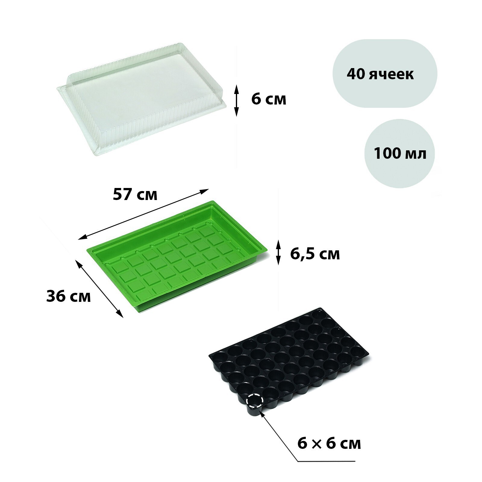 Мини-парник для рассады, 56.7 × 36 × 15.5 см, 1 вставка, 40 ячеек, Greengo