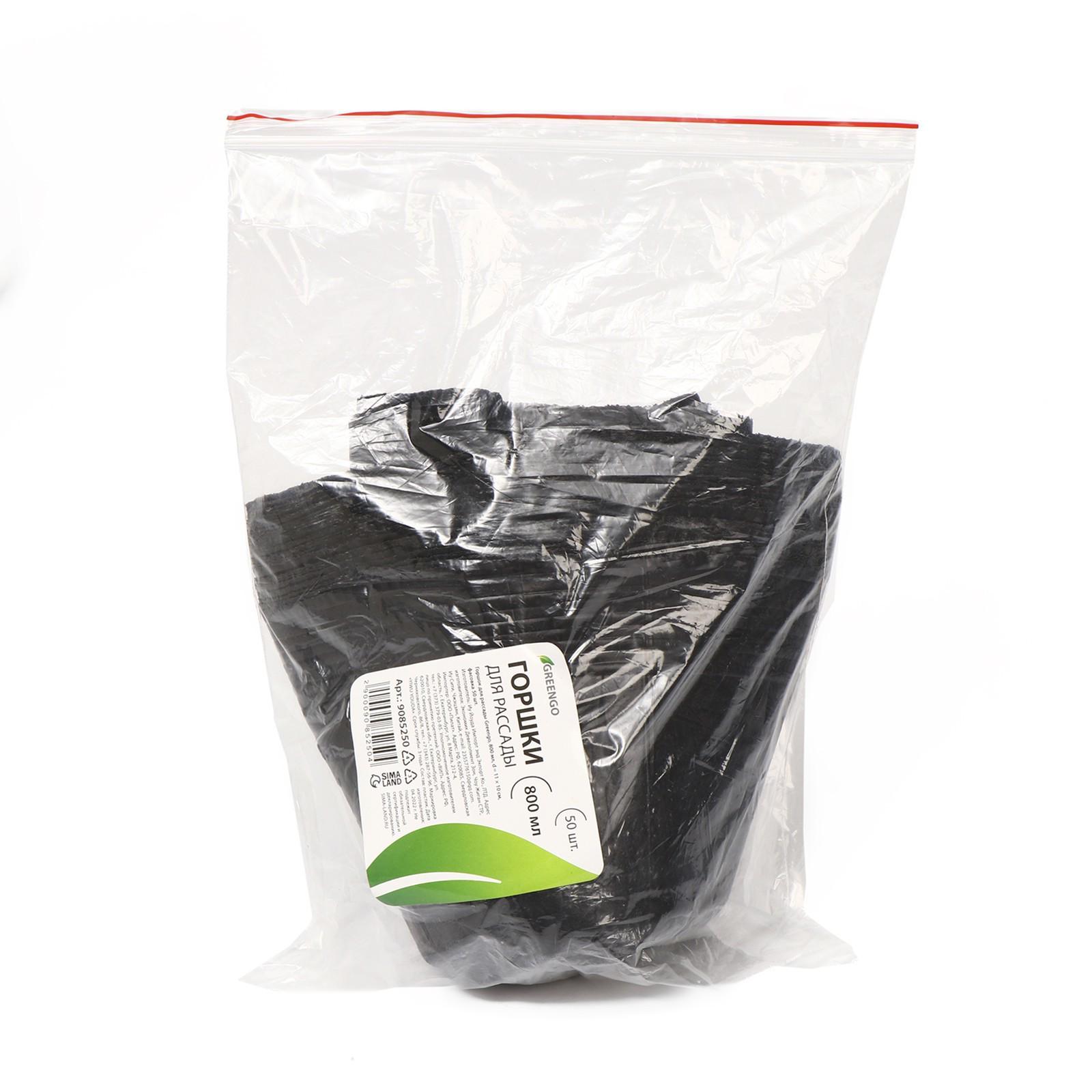 Горшки для рассады, 800 мл, 11 × 10 × 8 см, полиэтилен толщиной 50 мкм, чёрный, Greengo