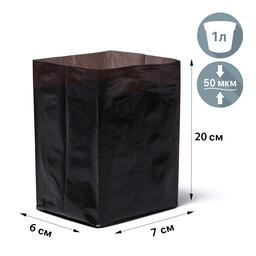 Пакет для рассады, 1 л, 7 × 20 см, полиэтилен толщиной 50 мкм, с перфорацией, чёрный, Greengo