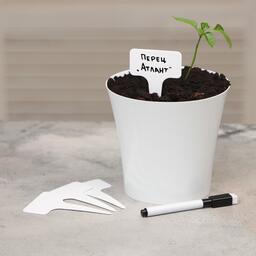 Таблички садовые для маркировки, 15 см, набор 10 шт + маркер, пластик, белые, Greengo