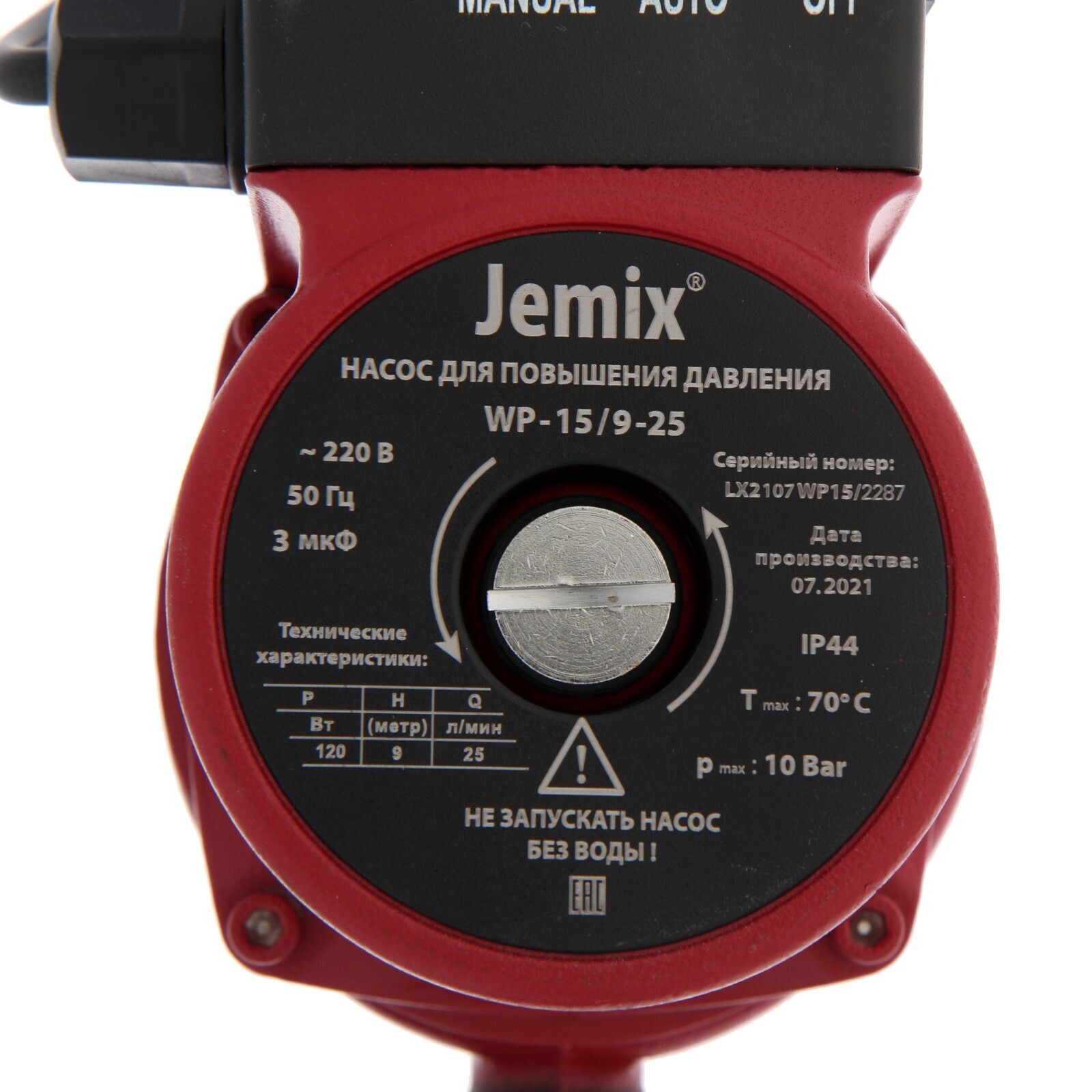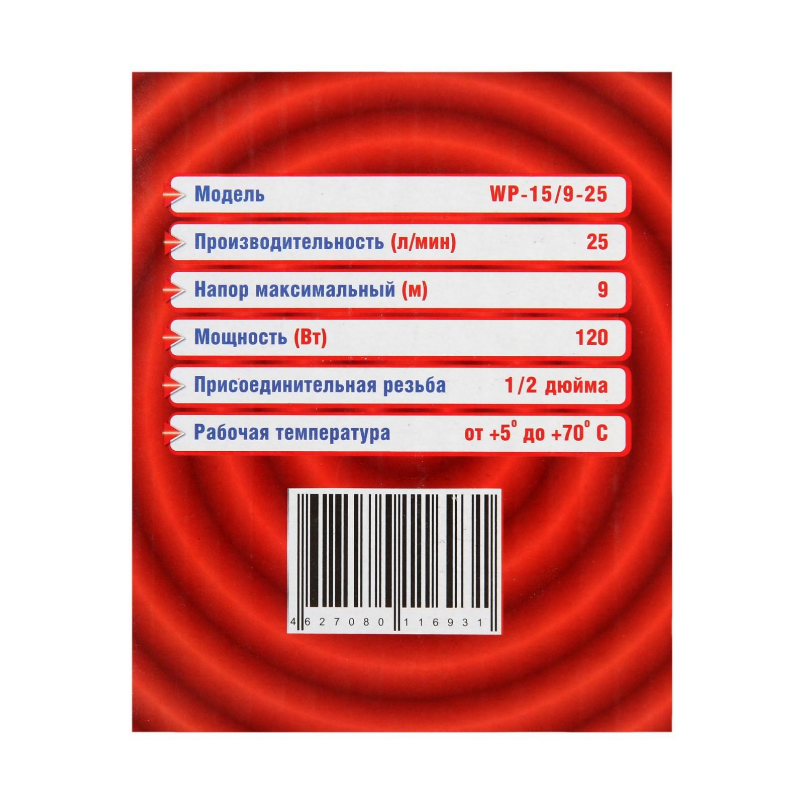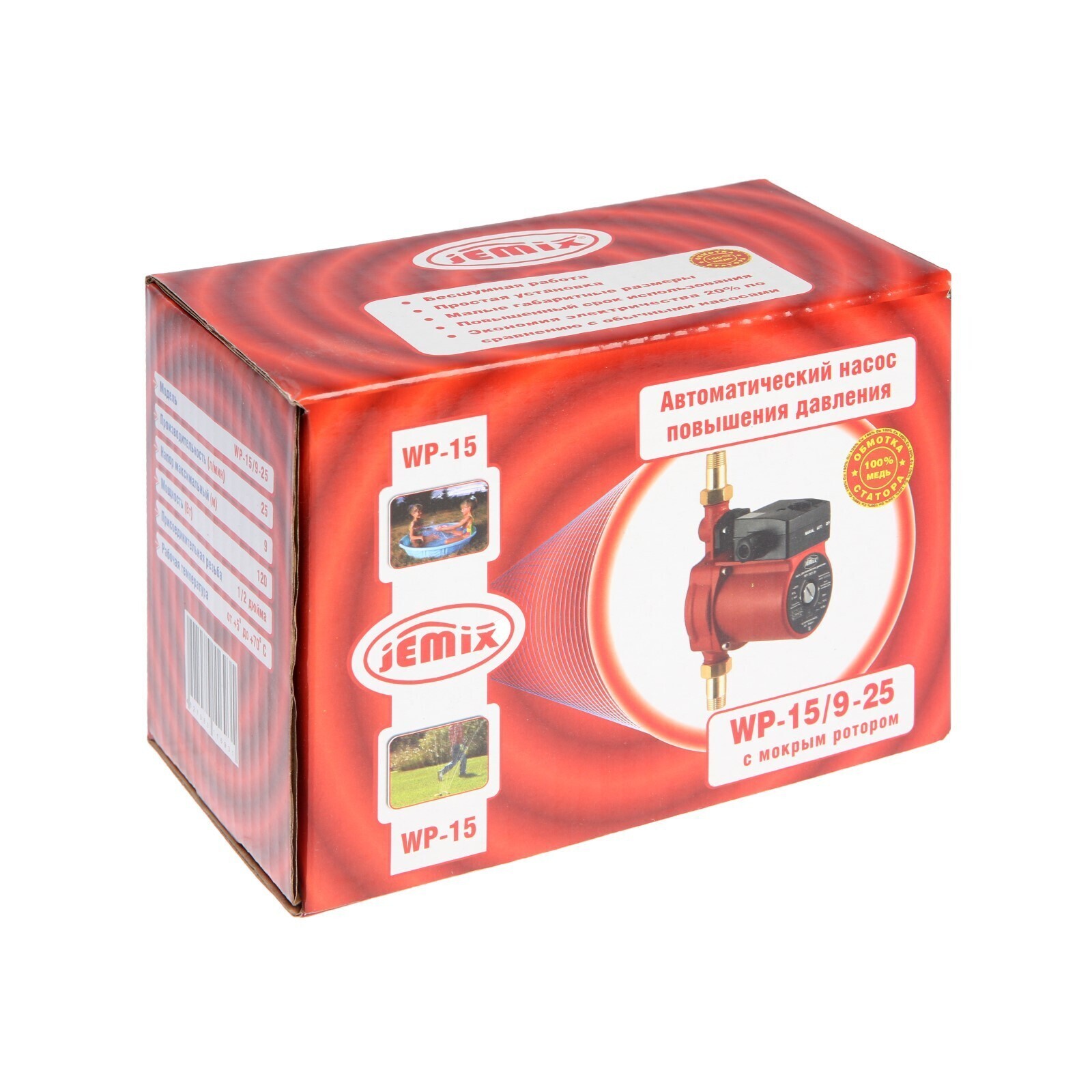 Насос повышения давления JEMIX WP-15/9-25, 120 Вт, напор 9 м, 25 л/мин, мокрый ротор