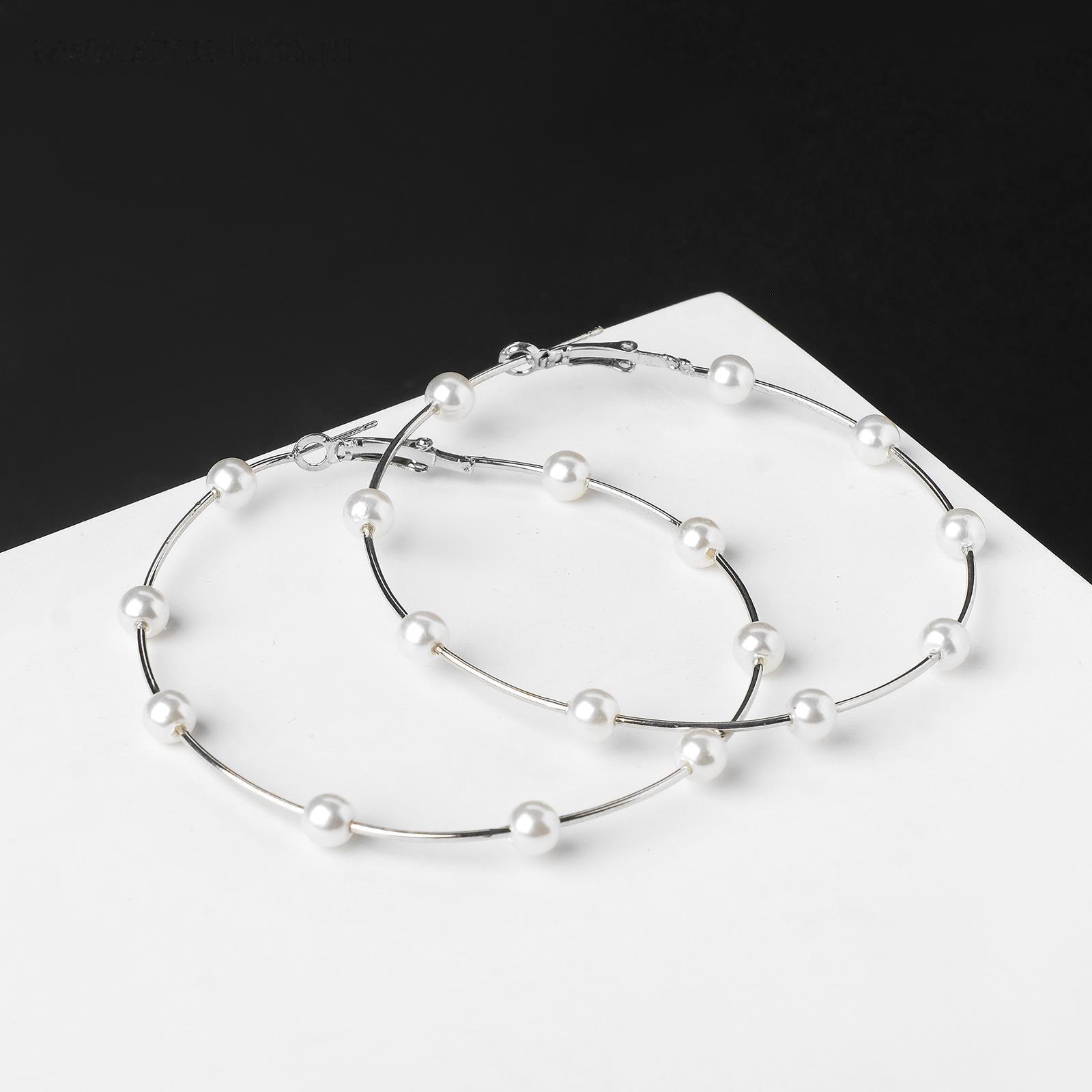 Серьги-кольца "Бусинки", шар 6, d=7 см цвет белый в серебре