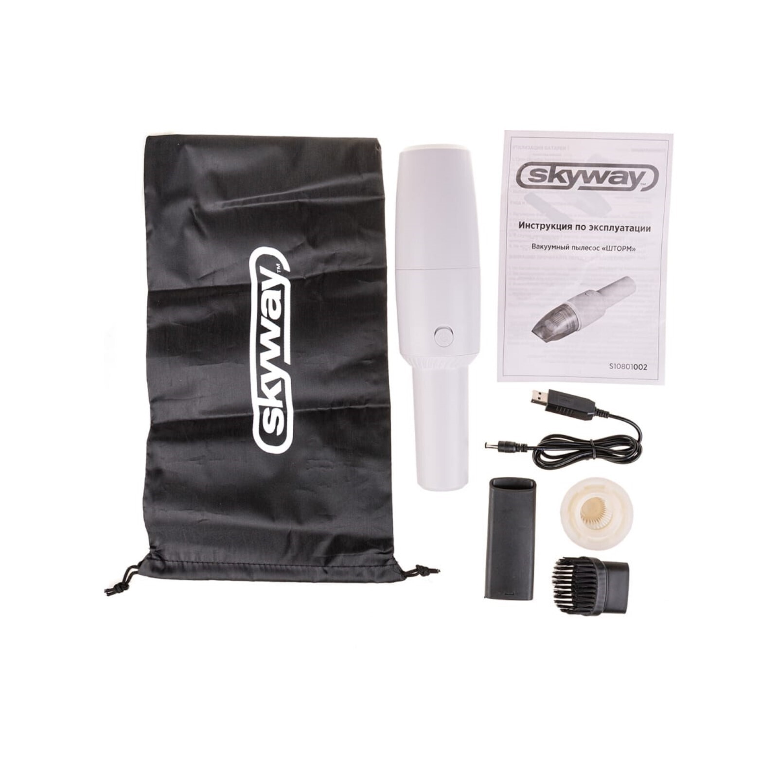 Пылесос автомобильный Skyway Шторм, беспроводной, 60 Вт, 7.4 В, 2 насадки, в сумке