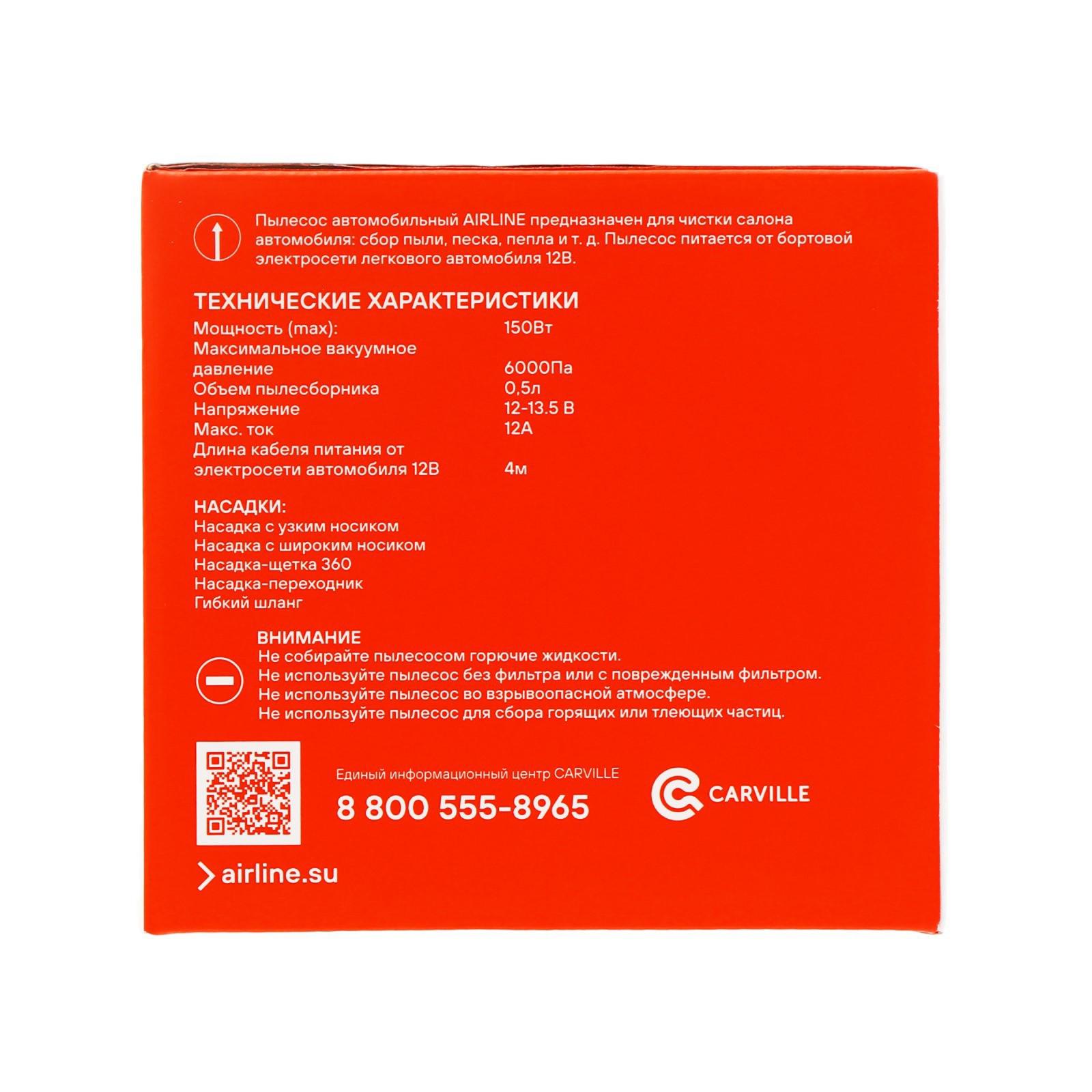 Пылесос автомобильный Airline CYCLONE TURBO VCA-03, 150 Вт, 0.5 л, 6 кПа