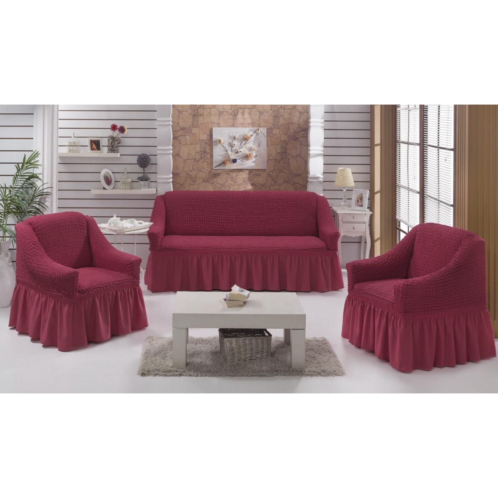 Набор чехлов для дивана и кресел BULSAN 3-х предметный, цвет грязно-розовый