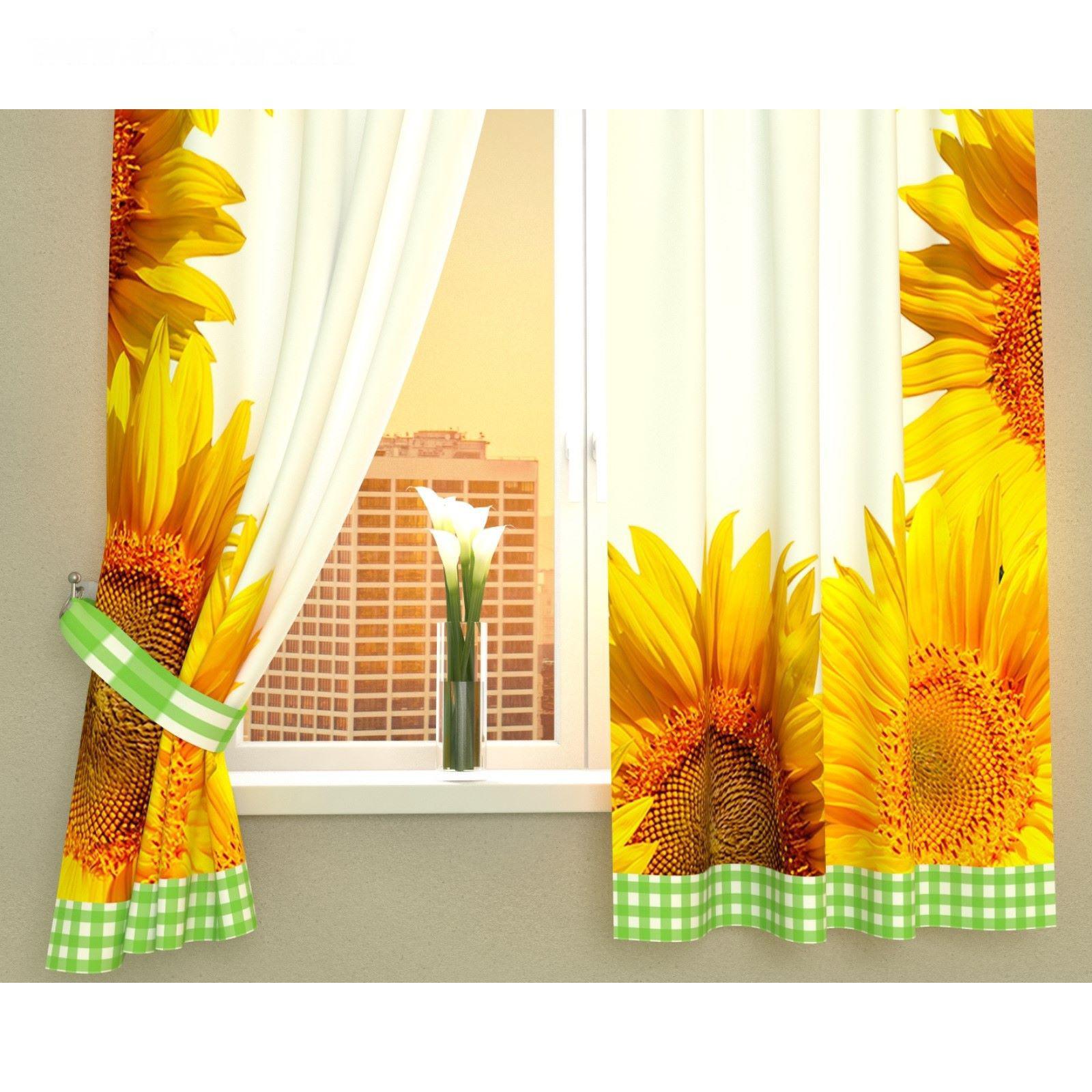Фотошторы кухонные «Солнечное настроение», размер 145 х 160 см - 2 шт., габардин