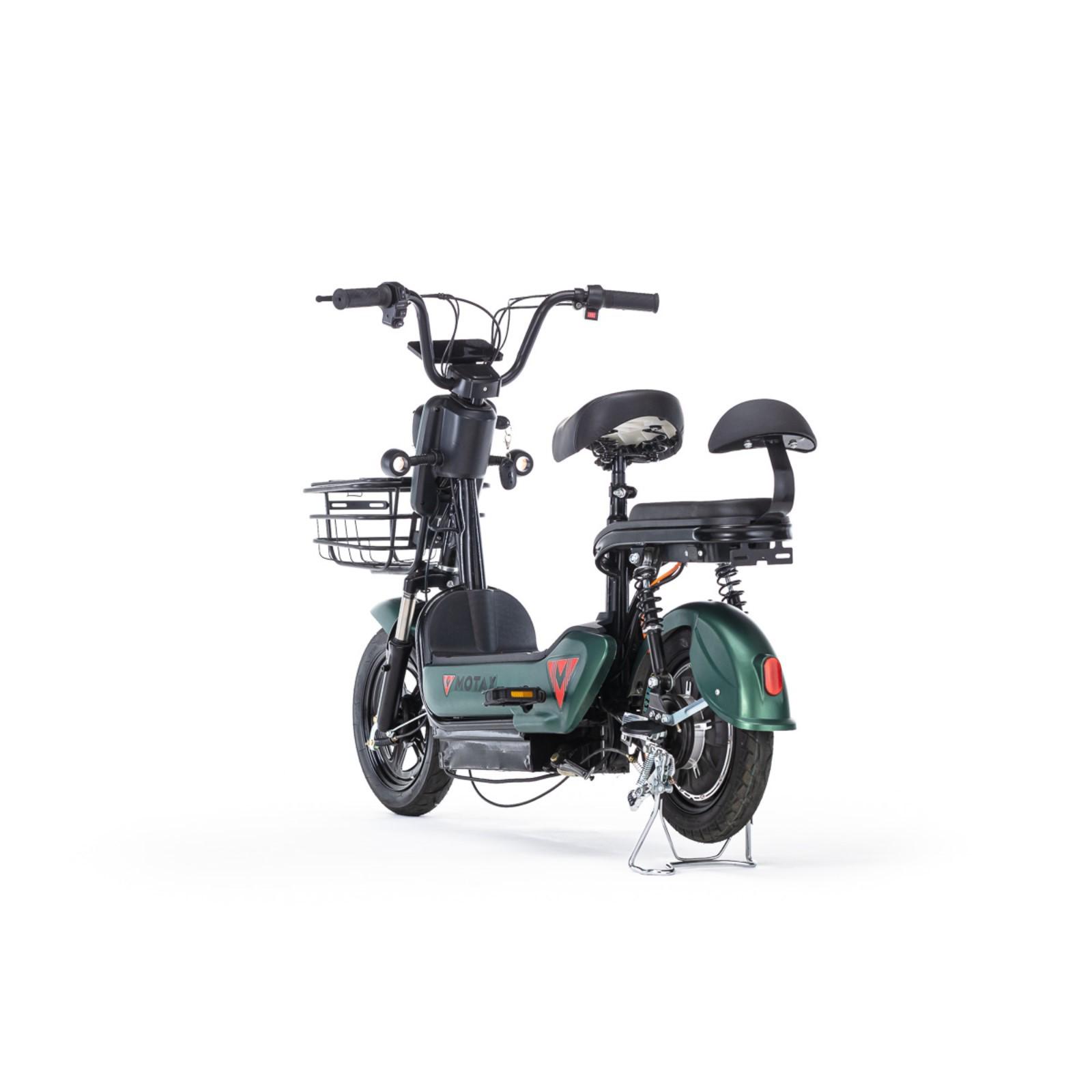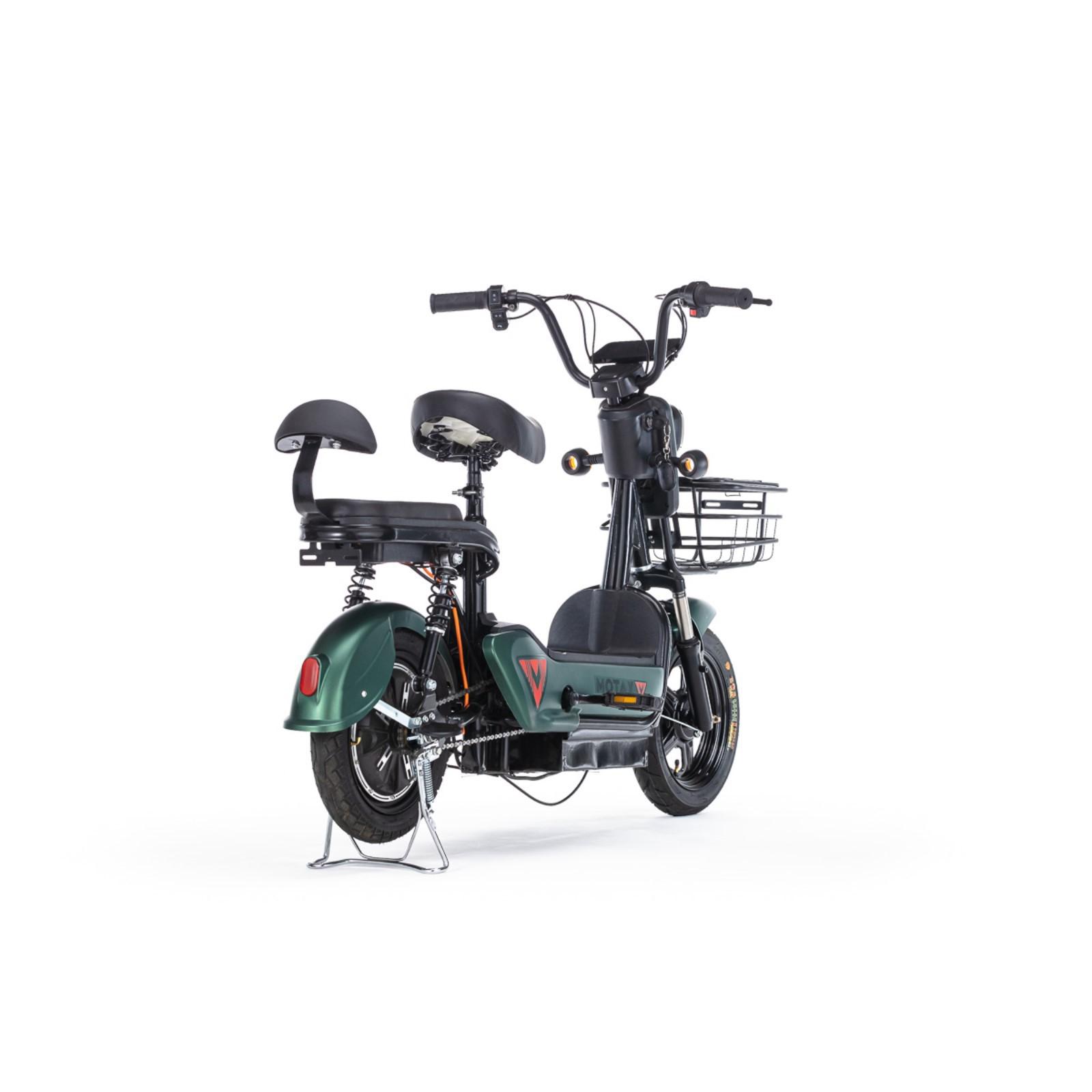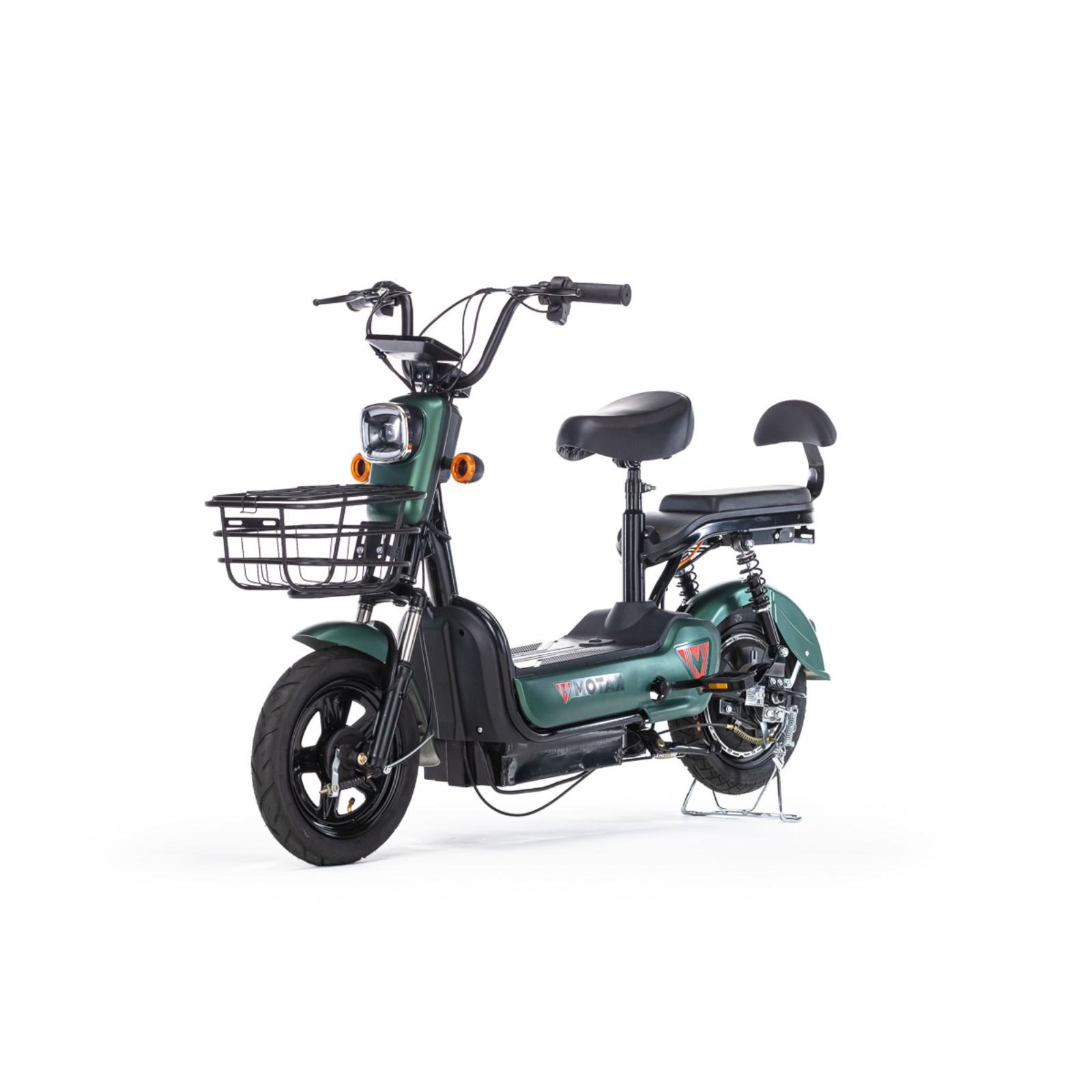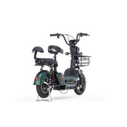 Велосипед имеет литые диски 14'' и развивает скорость до 35 км/час. Тормоза барабанные, спереди и сзади. Присутствует светодиодная фара и указатели поворотов. Можно ездить вдвоем, для заднего пассажира есть специальная подножка. Рама выполнена из высокоуглеродистой стали. Электровелосипед прекрасно подходит для прогулок в городе и за городом, поездок на даче, в парках. Соблюдайте правила дорожного движения и используйте необходимую экипировку. Катайтесь с удовольствием!