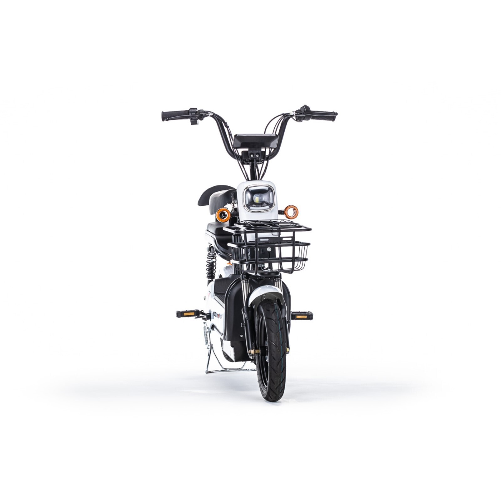 Это современный электромопед с бесщеточным двигателем мощностью 500(250) ватт. Может проехать в смешанном режиме до 35 км, а в идеальных условиях — до 70 км.