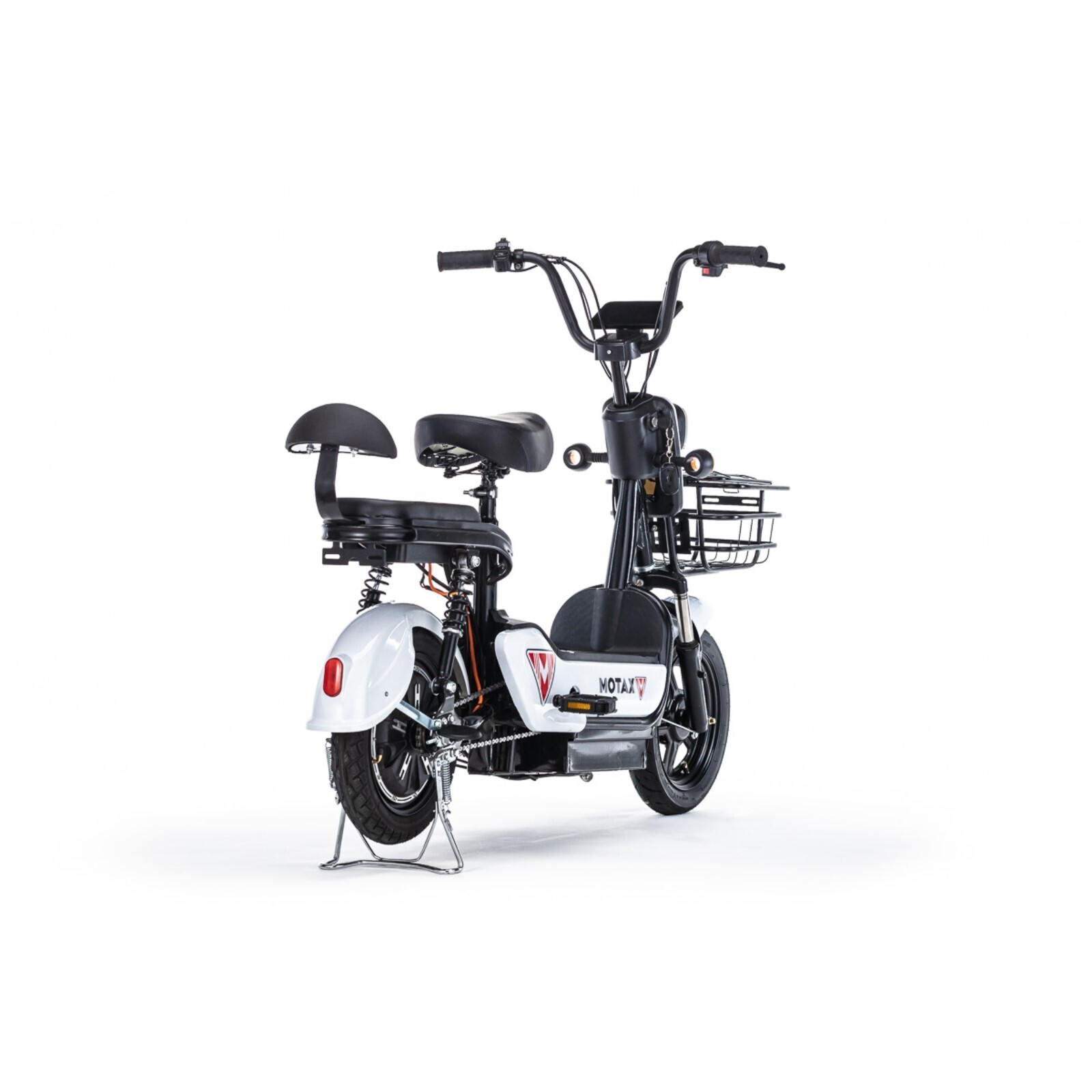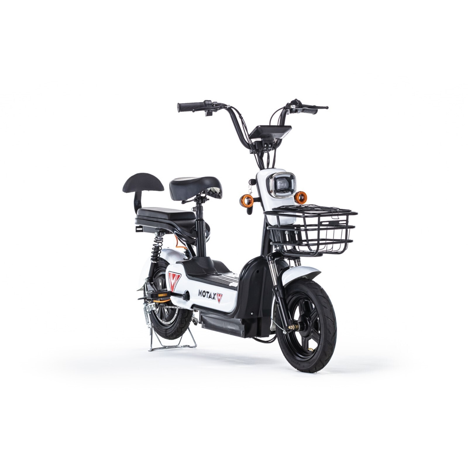 Велосипед имеет литые диски 14 и развивает скорость до 35 км/час. Тормоза барабанные, спереди и сзади. Присутствует светодиодная фара и указатели поворотов. Можно ездить вдвоем, для заднего пассажира есть специальная подножка. Рама выполнена из высокоуглеродистой стали. Электровелосипед прекрасно подходит для прогулок в городе и за городом, поездок на даче, в парках. Соблюдайте правила дорожного движения и используйте необходимую экипировку. Катайтесь с удовольствием с техникой Motax!