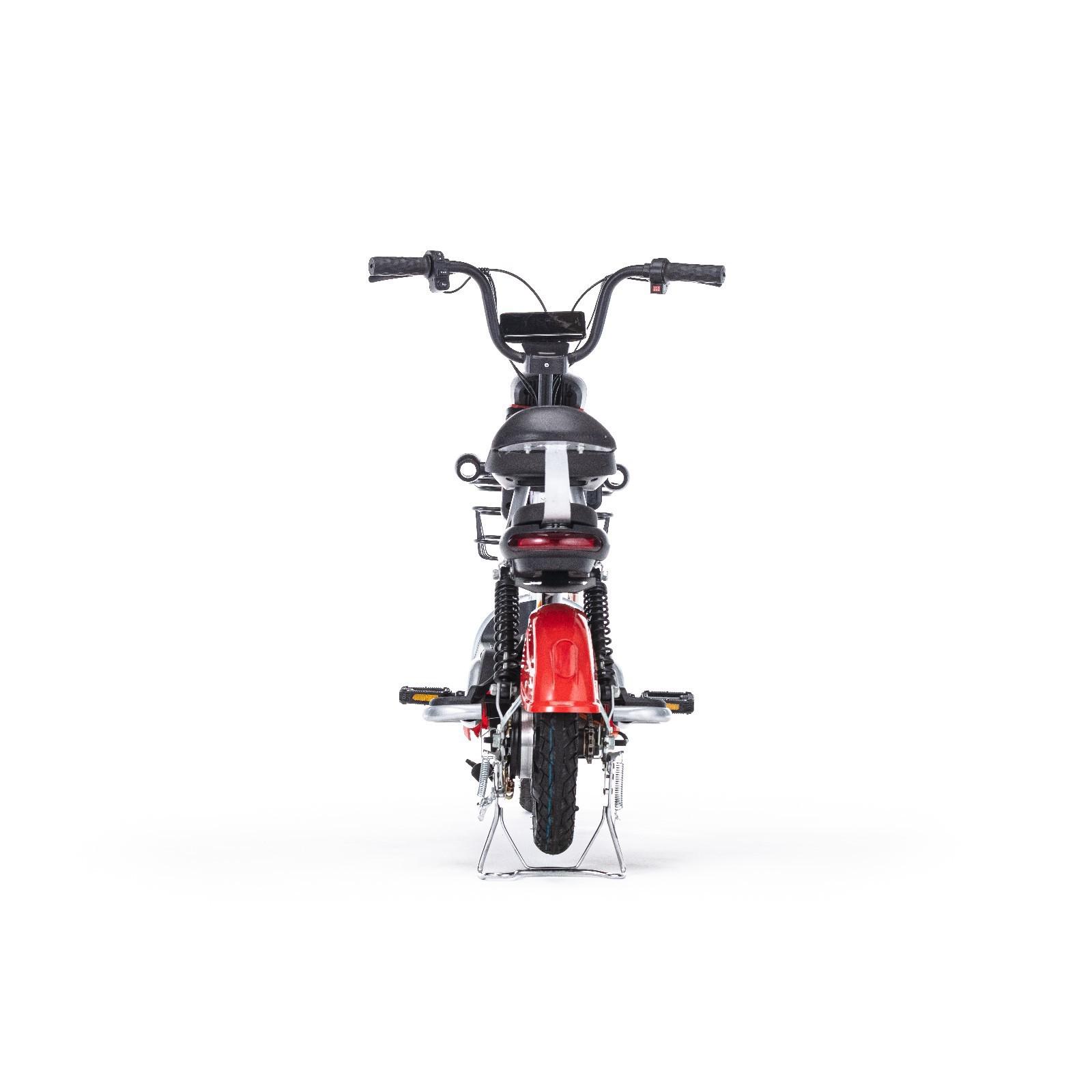 Этот электрический скутер имеет оптимальное соотношение характеристик для комфортной и приятной езды. Мощный аккумулятор 500W емкостью 20Ah и напряжение 48V позволяет развивать скорость до 40 км/ч и проехать на одном заряде без использования педалей до 40 км. АКБ съемный, что позволяет удобно заряжать его где угодно. Максимальная нагрузка в 150 кг и передний багажник-корзинка позволят вам взять в дорогу все необходимое. Есть сидение со спинкой для заднего пассажира, а также подножки для него, можно ездить вдвоем! Колеса размером в 18 дюймов позволяют легко перемещаться не только по асфальтированным дорогам городским парков, но и по дачным грунтовкам. Стальная рама, амортизаторы, тормоза на обоих колесах обеспечивают достаточный комфорт, а светодиодная фара и задний стоп сигнал позволяют перемещаться и в темное время суток.