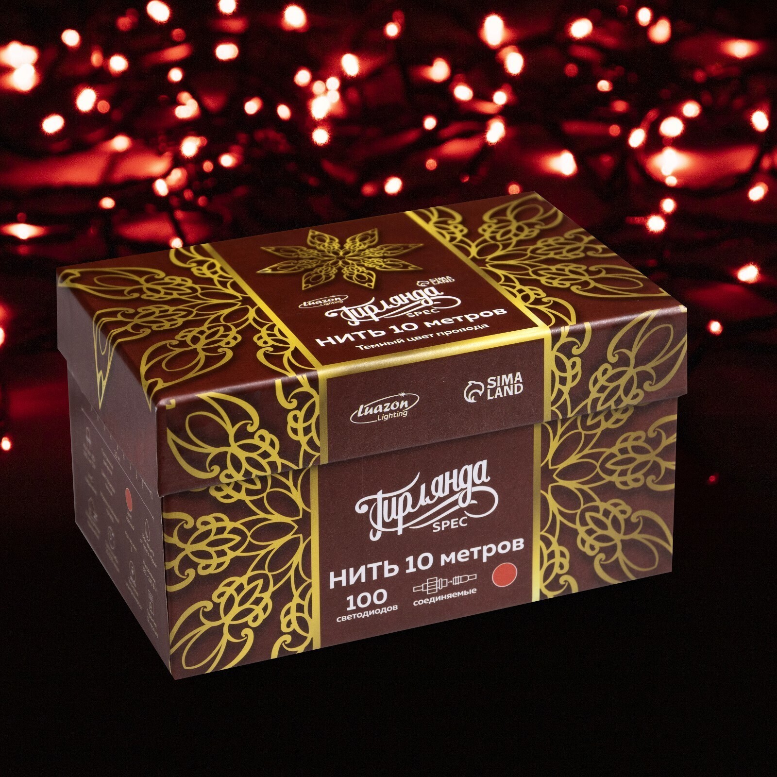 Гирлянда «Нить» 10 м, IP44, УМС, тёмная нить, 100 LED, свечение красное, 220 В