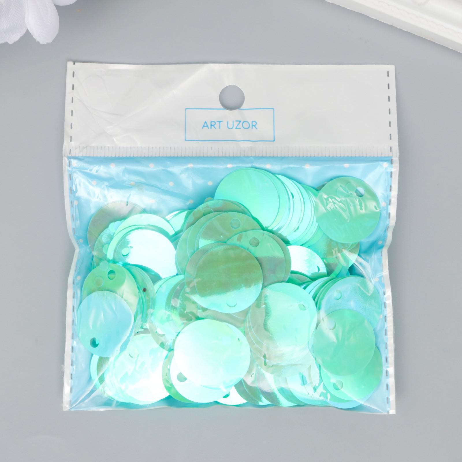 Пайетки "Круг" мятные набор 30 гр d=2 см