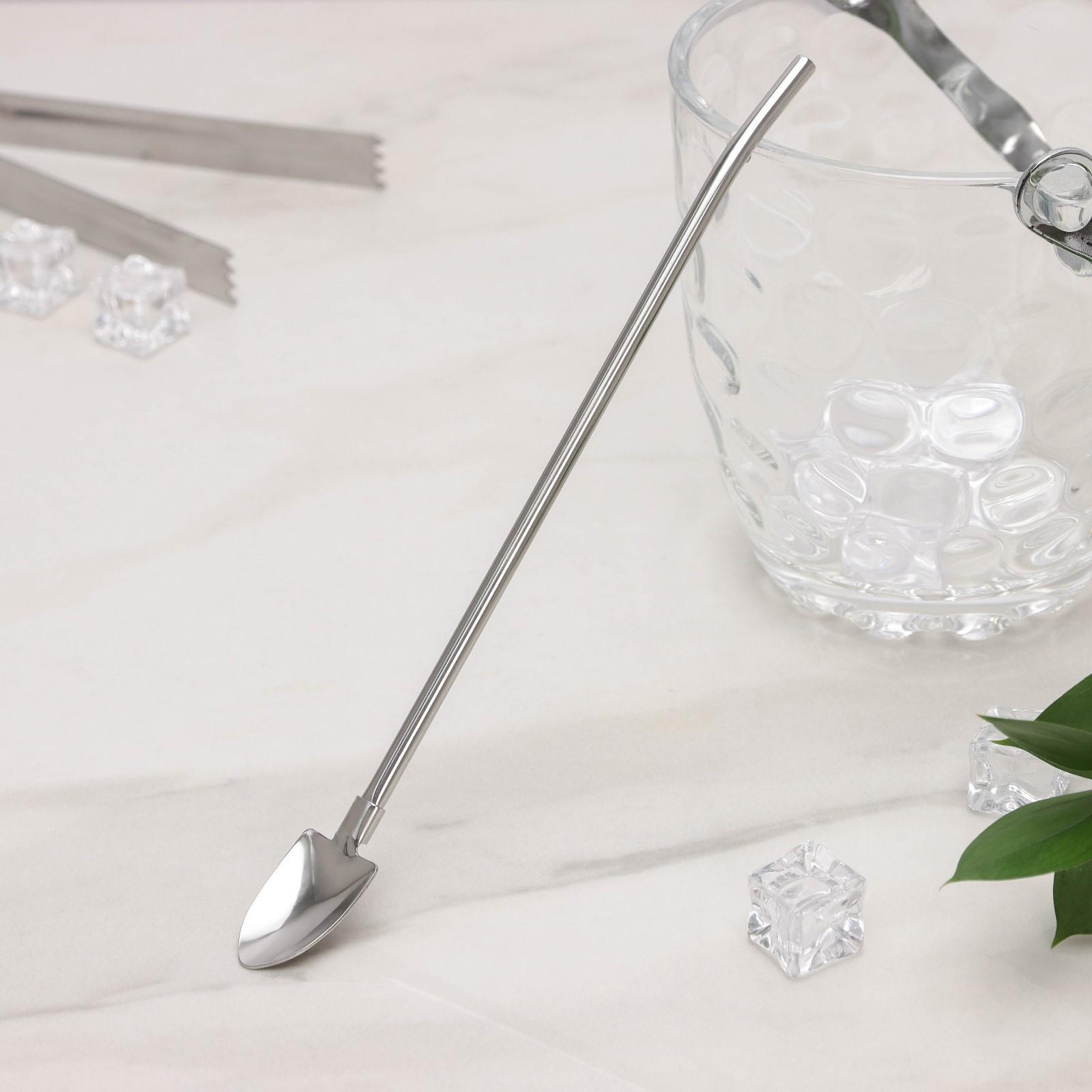 Ложка-трубочка для коктейля «Лопата», 21,5×2,5 см, цвет серебряный