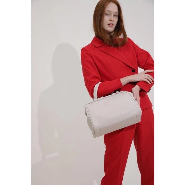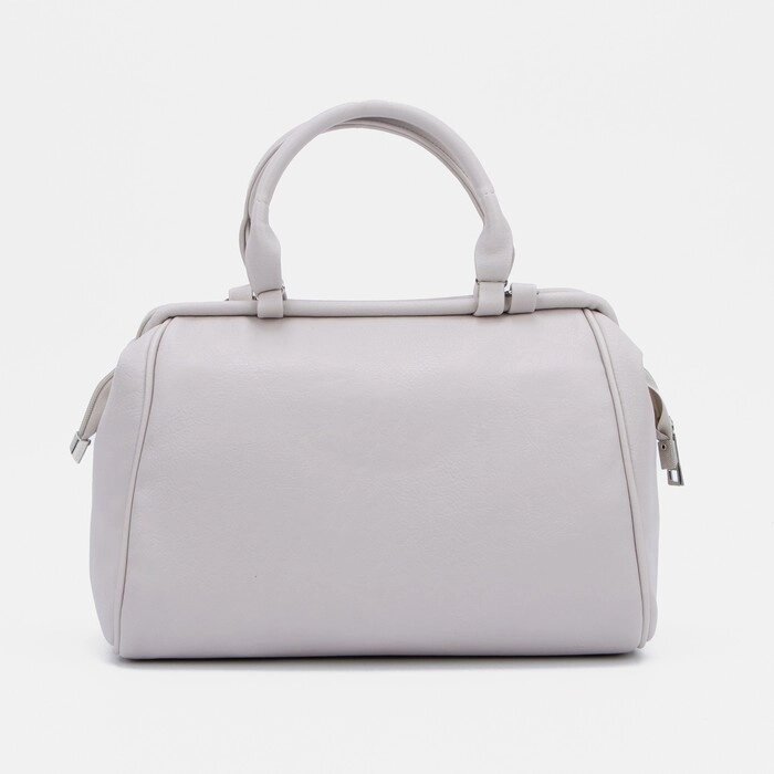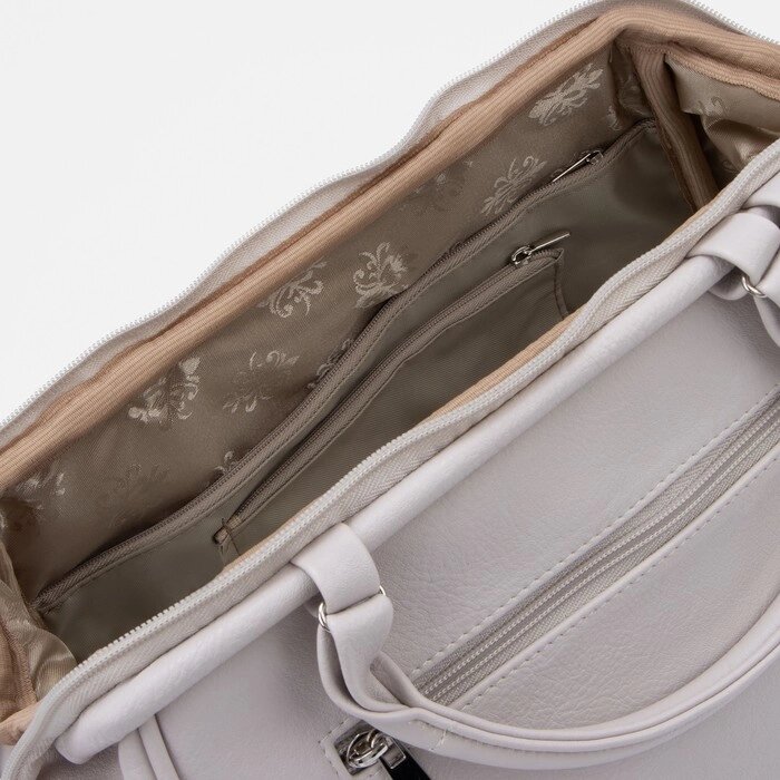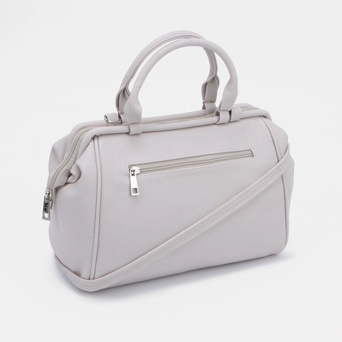 Сумка-саквояж на молнии, наружный карман, длинный ремень, цвет светло-бежевый