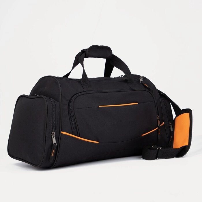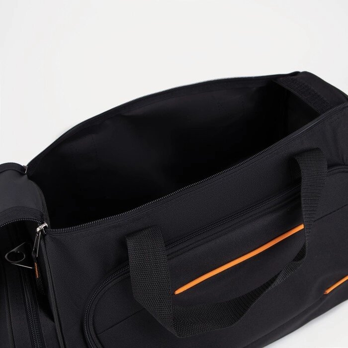 Сумка спортивная на молнии, 3 наружных кармана, цвет чёрный/оранжевый