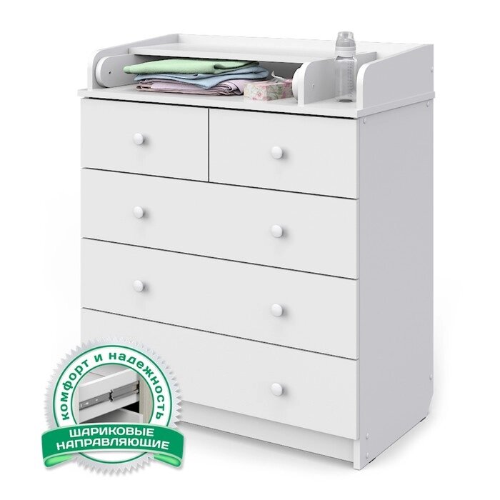 Комод детский с пеленальным столиком Сириус-2 805 ЛДСП, белый, 5 ящиков