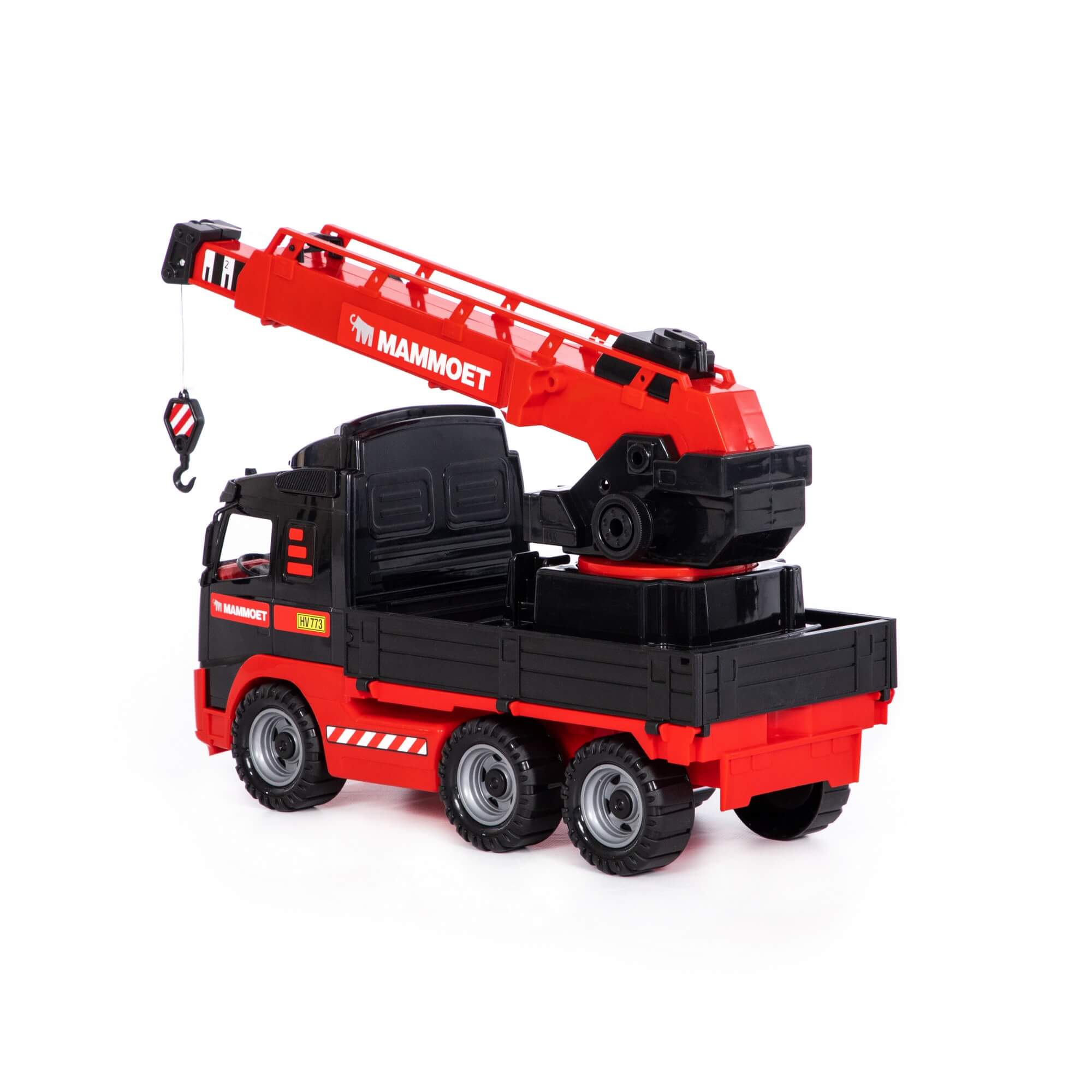 Крупнейшая в СНГ фабрика по производству игрушек «Полесье» совместно с компанией «МАММОЕТ», специализирующейся на тяжёлых подъёмных работах и транспортировке тяжёлых грузов по воде и суше, наладила выпуск лицензионной серии эксклюзивных игрушек. Дизайн игрушек разработан в соответствии с фирменными цветами компании «МАММОЕТ», что позволяет игрушке выглядеть более реалистично. Автомобиль-кран уникален тем, что подъёмный механизм работает как у настоящего крана. Платформа крана поворачивается на 360°, стрела крана поднимается на 45° и выдвигается. Трос в виде верёвочки опускается с помощью лебёдки на 50 см. Кроме того, борта автомобиля можно открыть или снять. Автомобиль надёжный, имеет достойный внешний вид и относится к подарочной серии. Продаётся в лотке.