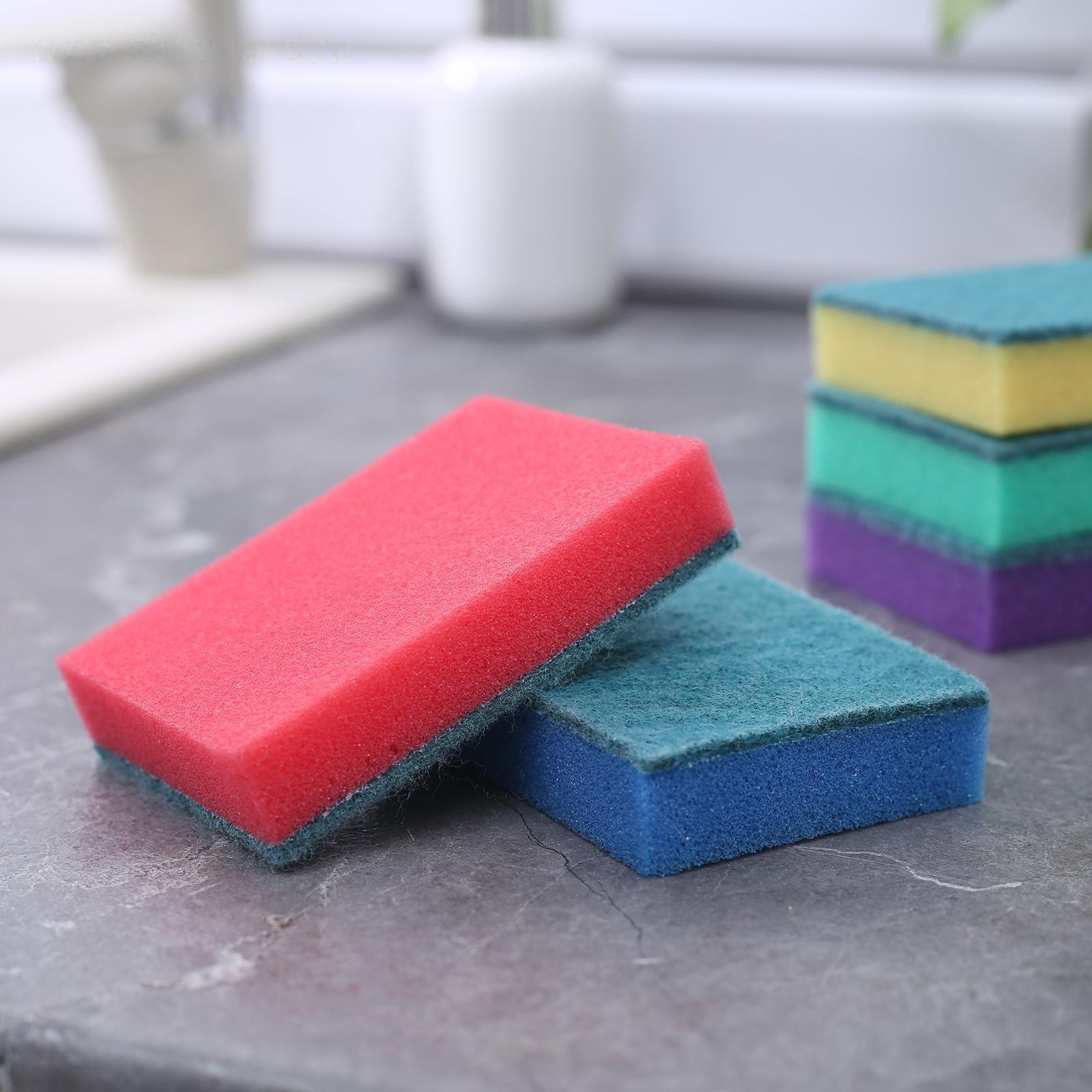 Набор губок бытовых с чистящим слоем Доляна «Супер», 10×7×2,5 см, 5 шт