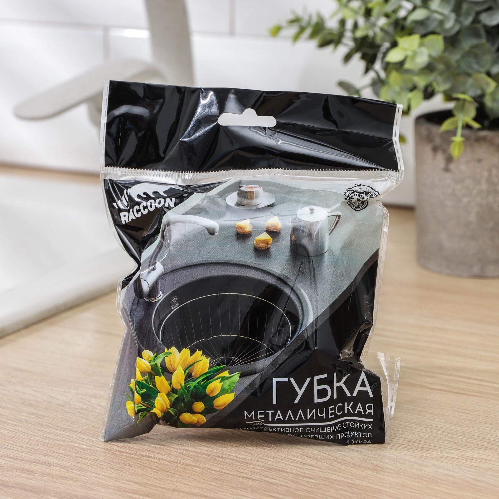Губка для посуды металлическая Raccoon, плетёная, оцинкованная, 40 гр