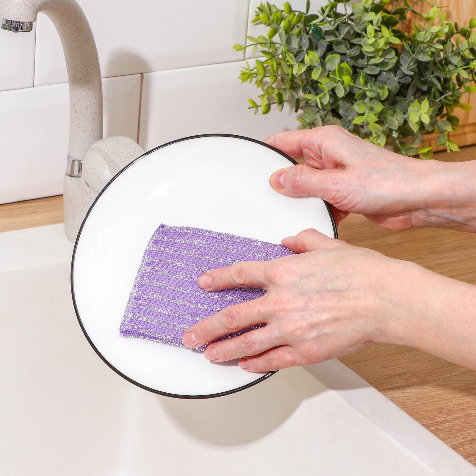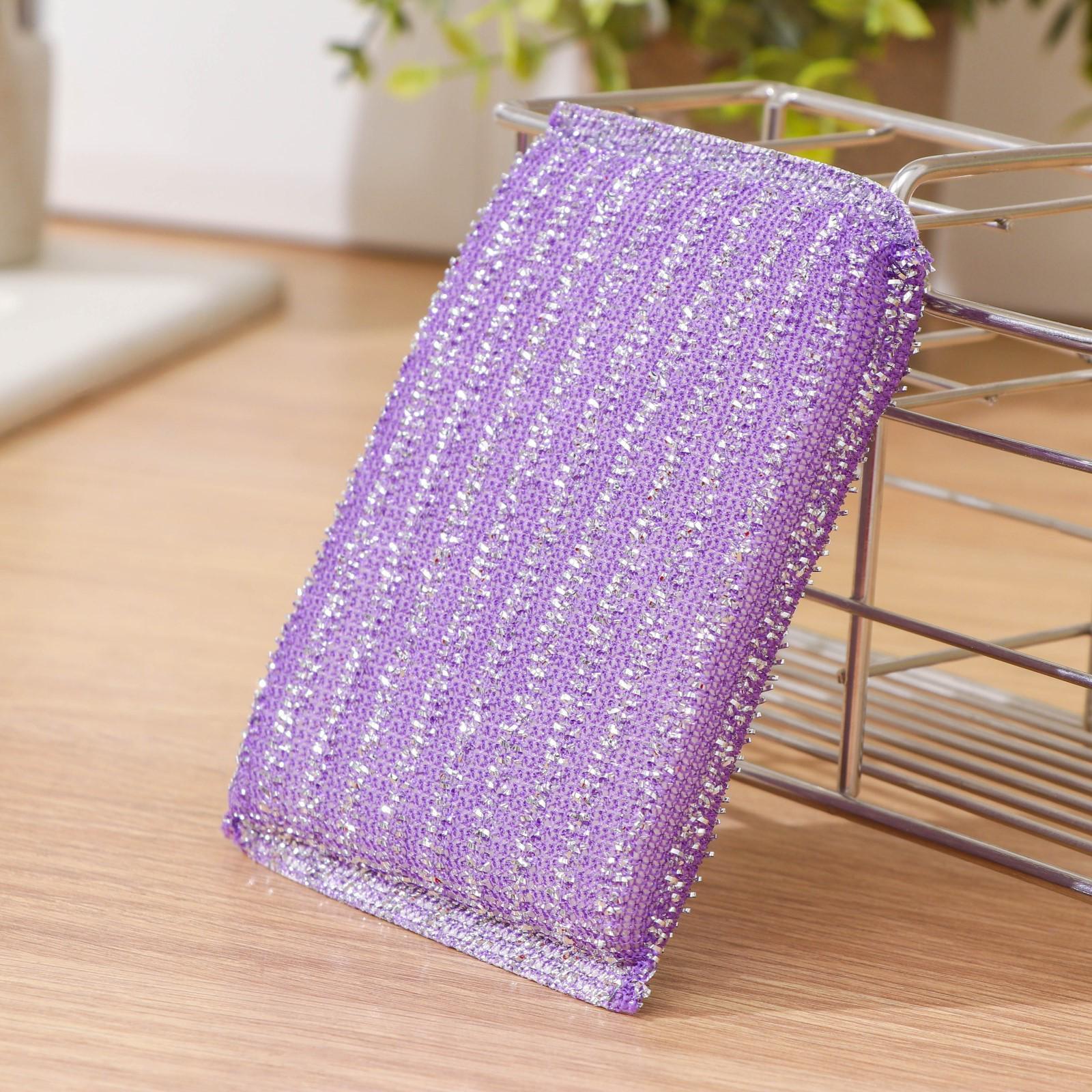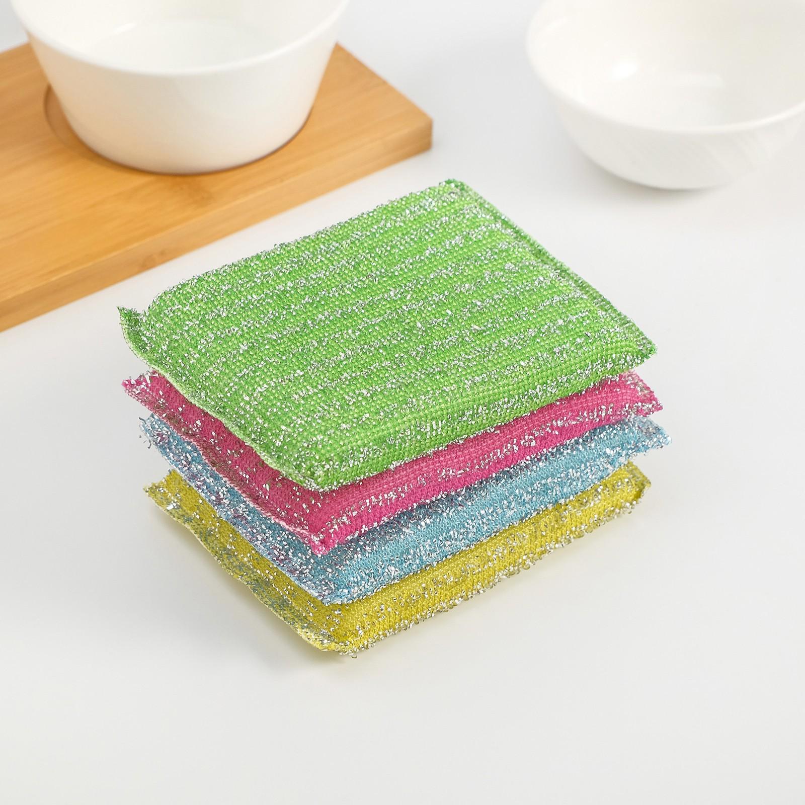 Губка для мытья посуды со стальной стружкой, 12×9×1.5 см, цвет МИКС