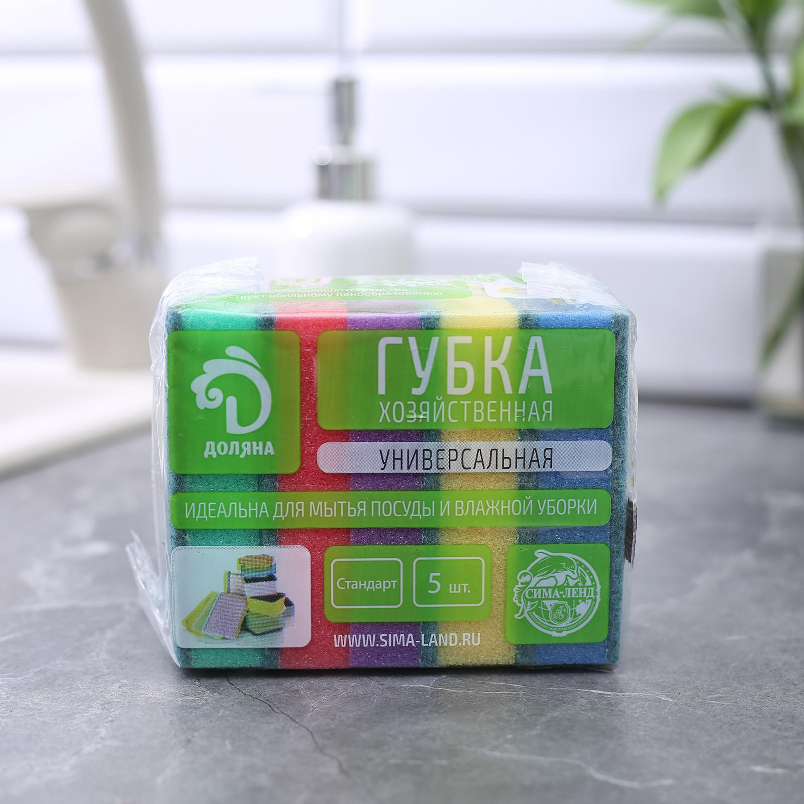 Набор губок бытовых с чистящим слоем Доляна «Стандарт», 9×6×2,5 см, 5 шт