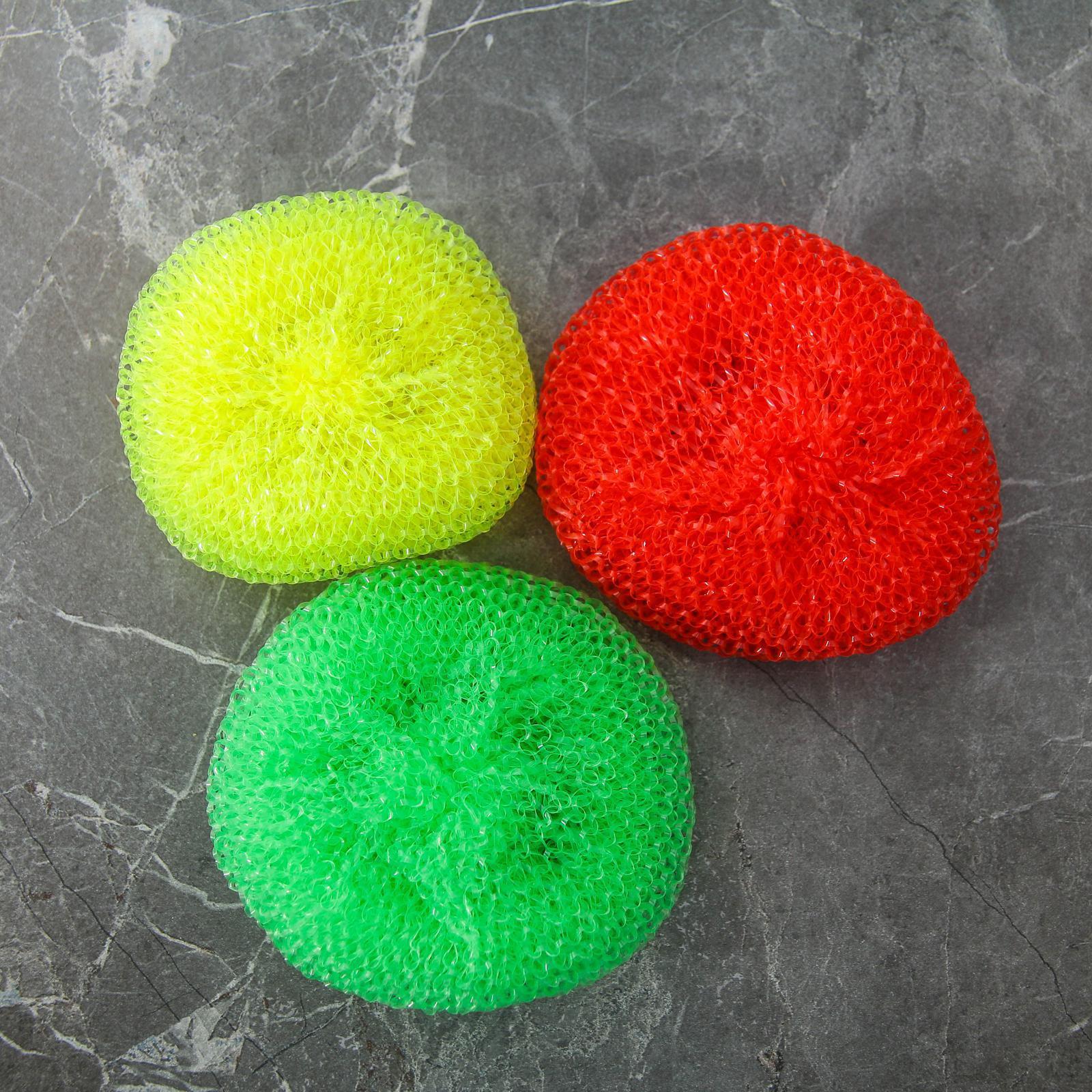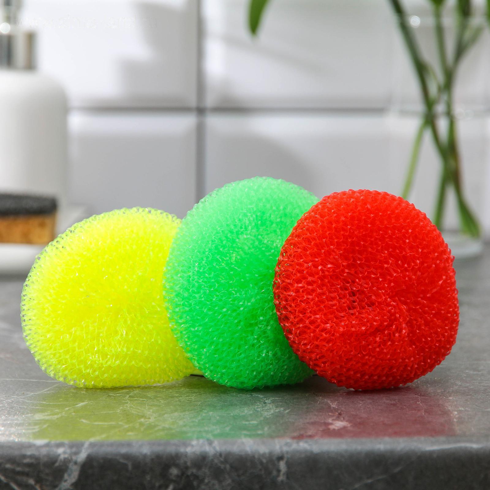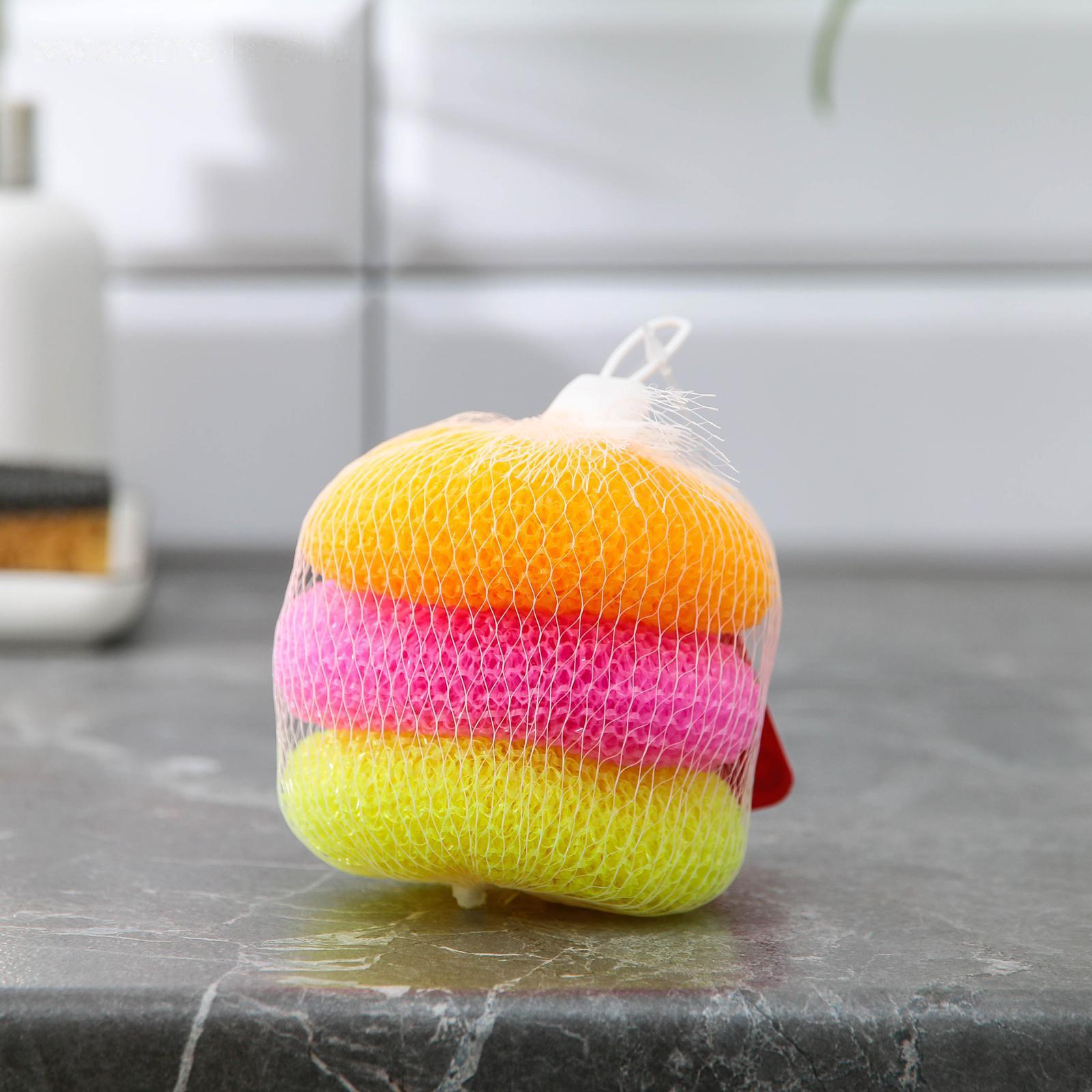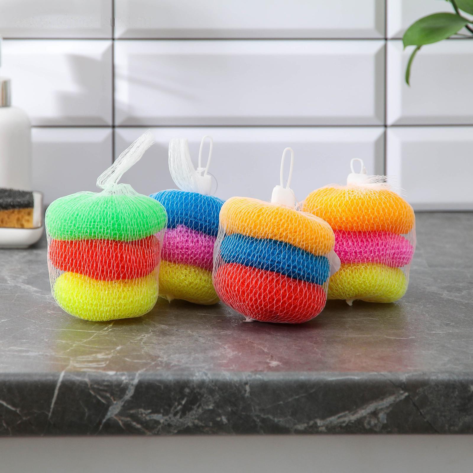 Набор губок для мытья посуды Доляна «Бублик», 3 шт, пластик, цвет МИКС