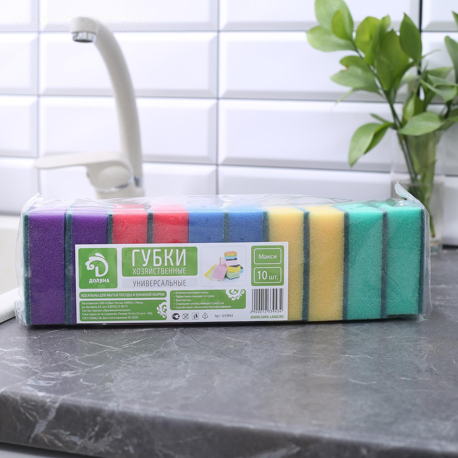 Набор губок бытовых с чистящим слоем Доляна «Макси», 9×6×3,5 см, 10 шт