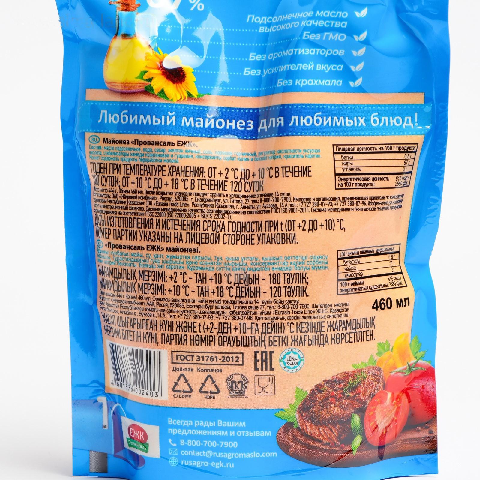 Майонез ЕЖК Провансаль 67% 444г д/п