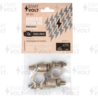 StartVOLT SBT023 Клеммы АКБ в комплекте латунь, 8мм болт и гайка для проводов до 35см кв.(SBT 023)