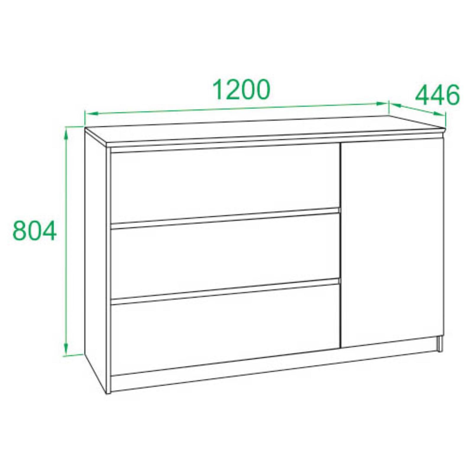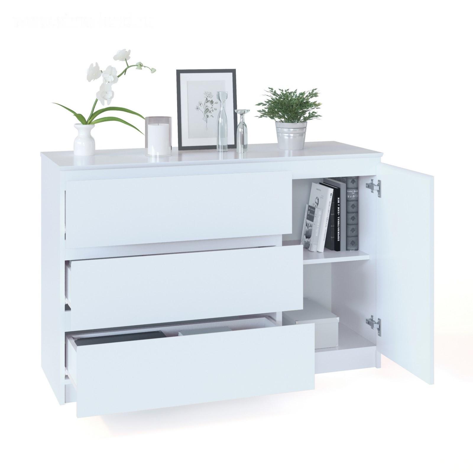 Комод с 3-мя ящиками и дверью, 1200 × 446 × 804 мм, цвет белый